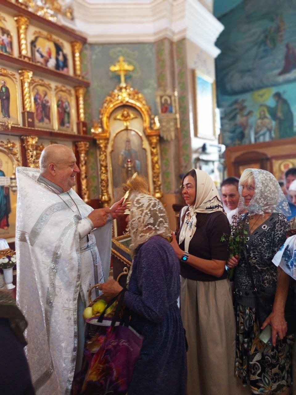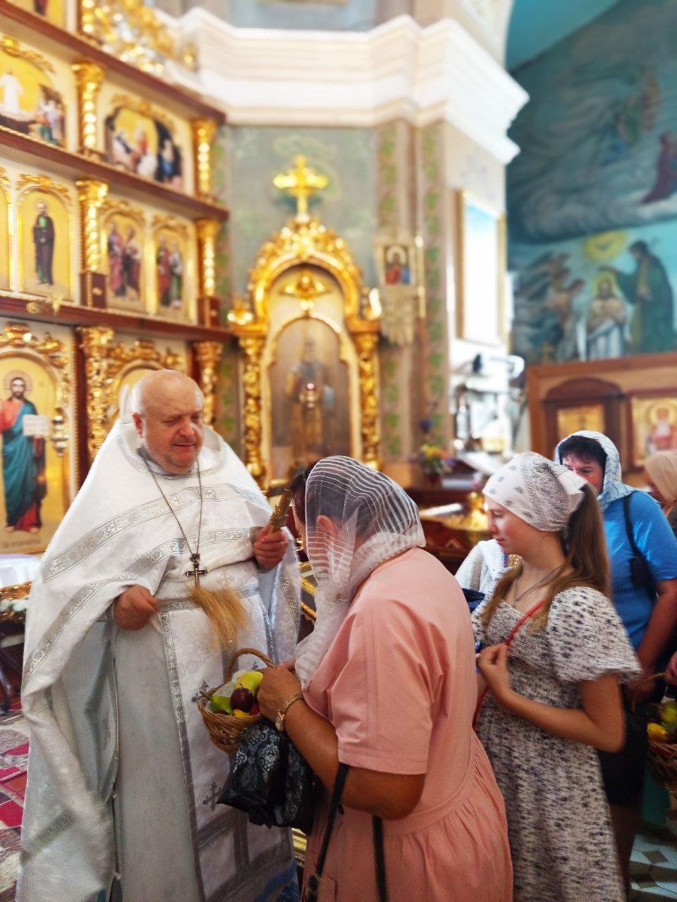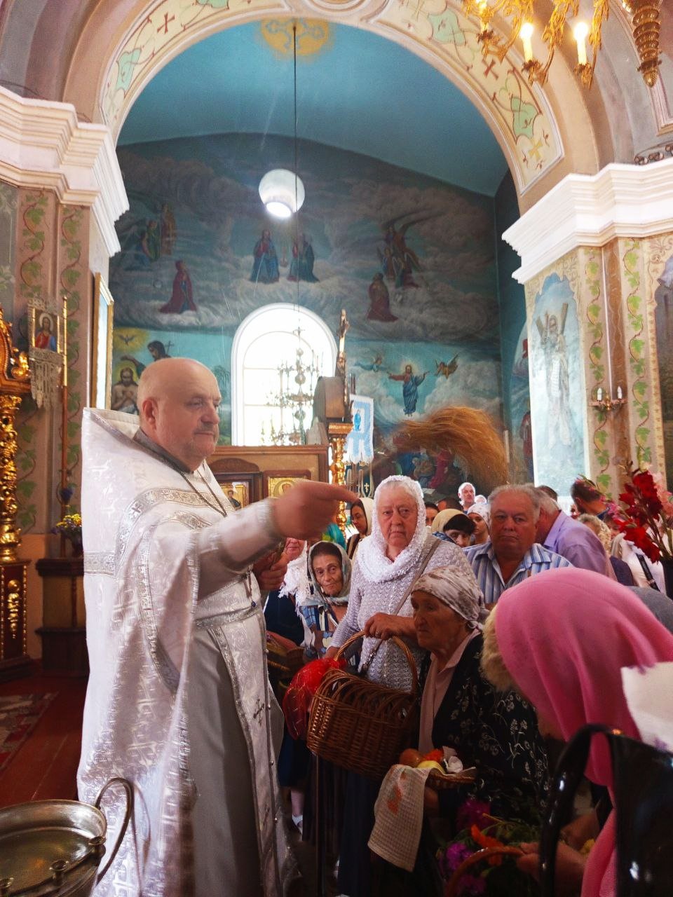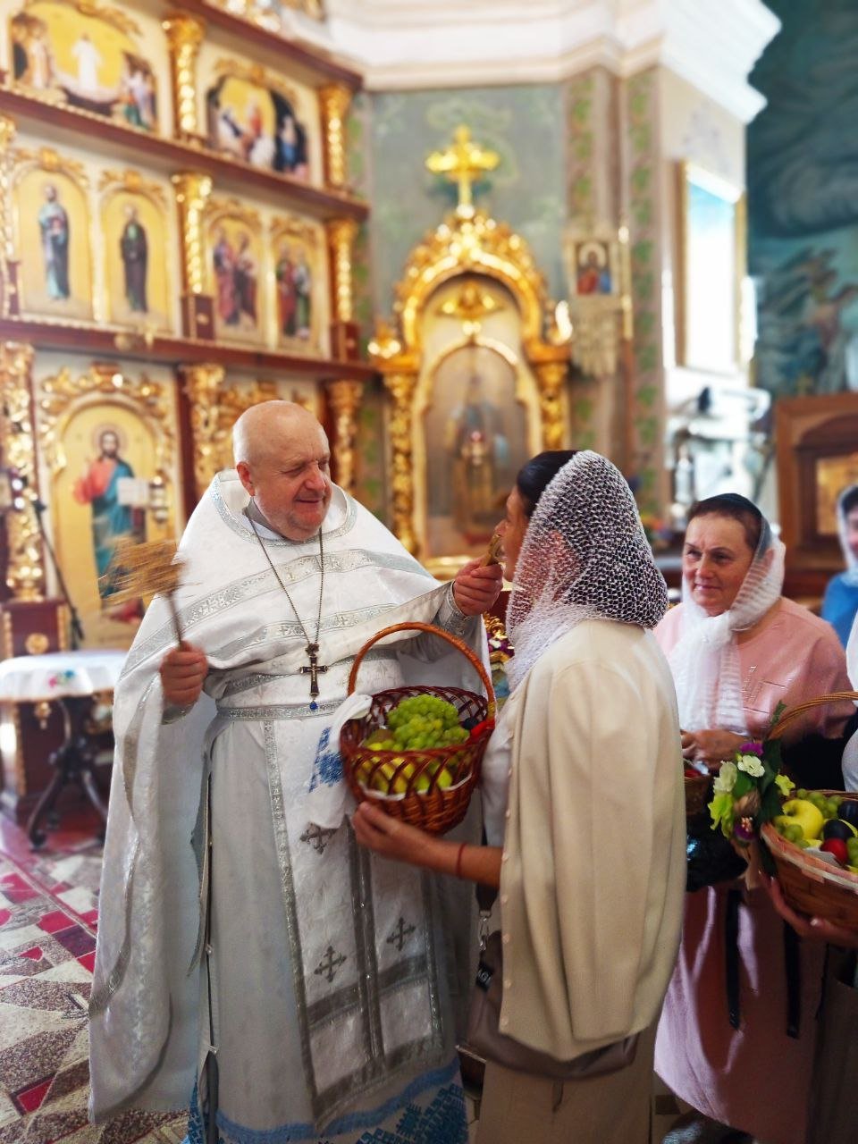 Після Літургії були прочитані молитви з проханням про благословення плодів нового врожаю. Священники окропили святою водою принесені вірянами кошики з дарами природи – яблуками, грушами, сливами та виноградом. І виблискували райдужні крапельки на обличчях людей, на плодах…