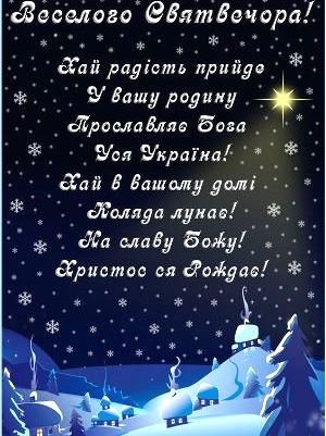 Нехай проміння Віфлеємської зірки, що сповістила про Народження Божого Сина, осяє наші душі й серця світлом миру, злагоди і любові, нехай дзвінкі колядки наповнять оселі радістю величного торжества.