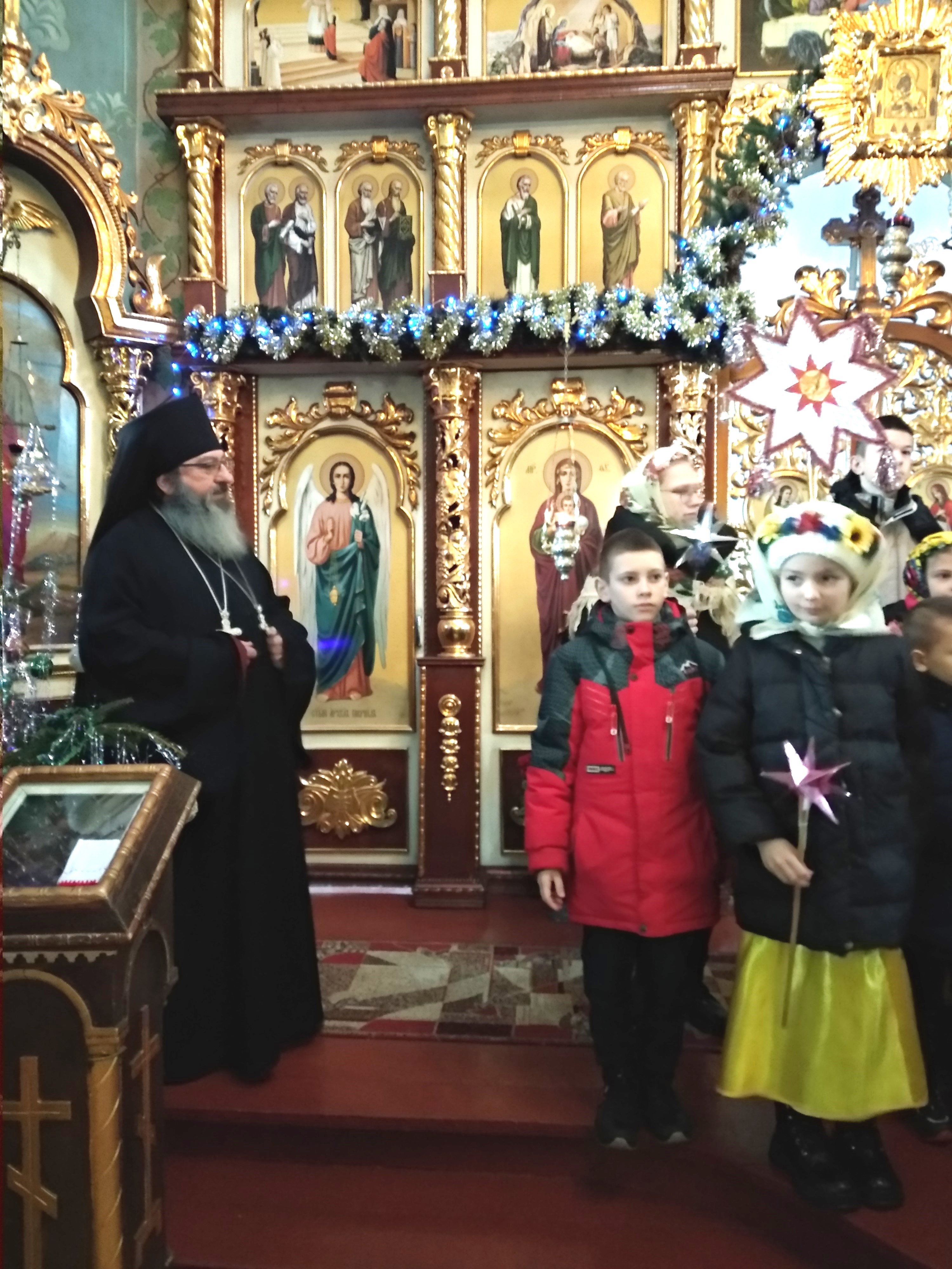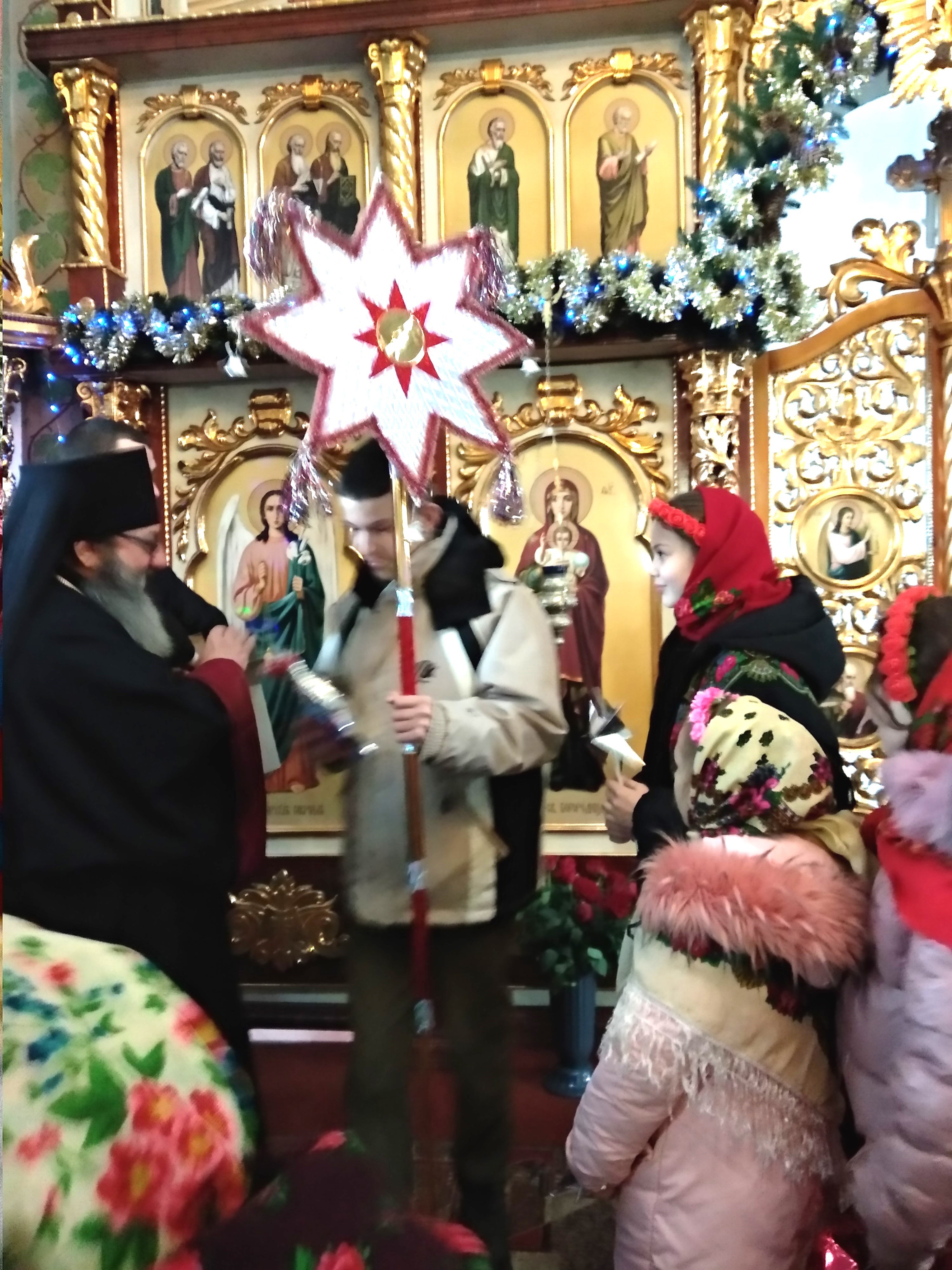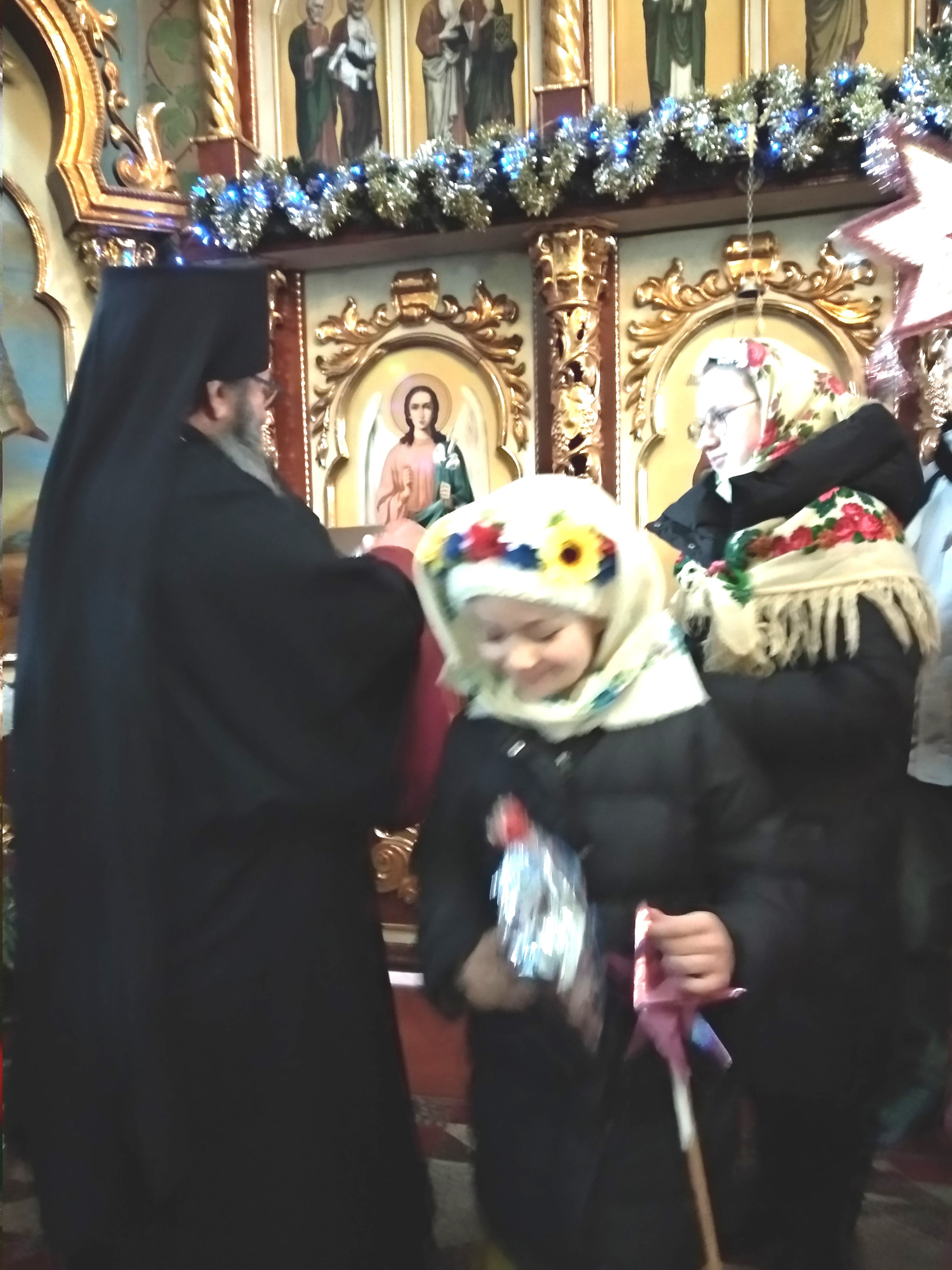 Отець Варфоломій адресував усім слова глибокої подяки: «Дякую вам за духовне спілкування та світлі промінці добрих віншувань і бажаю, щоб Різдвяна радість наповнювала серця та квітнула в оселях…» Маленьким колядникам вручив подарунки із солодощами.