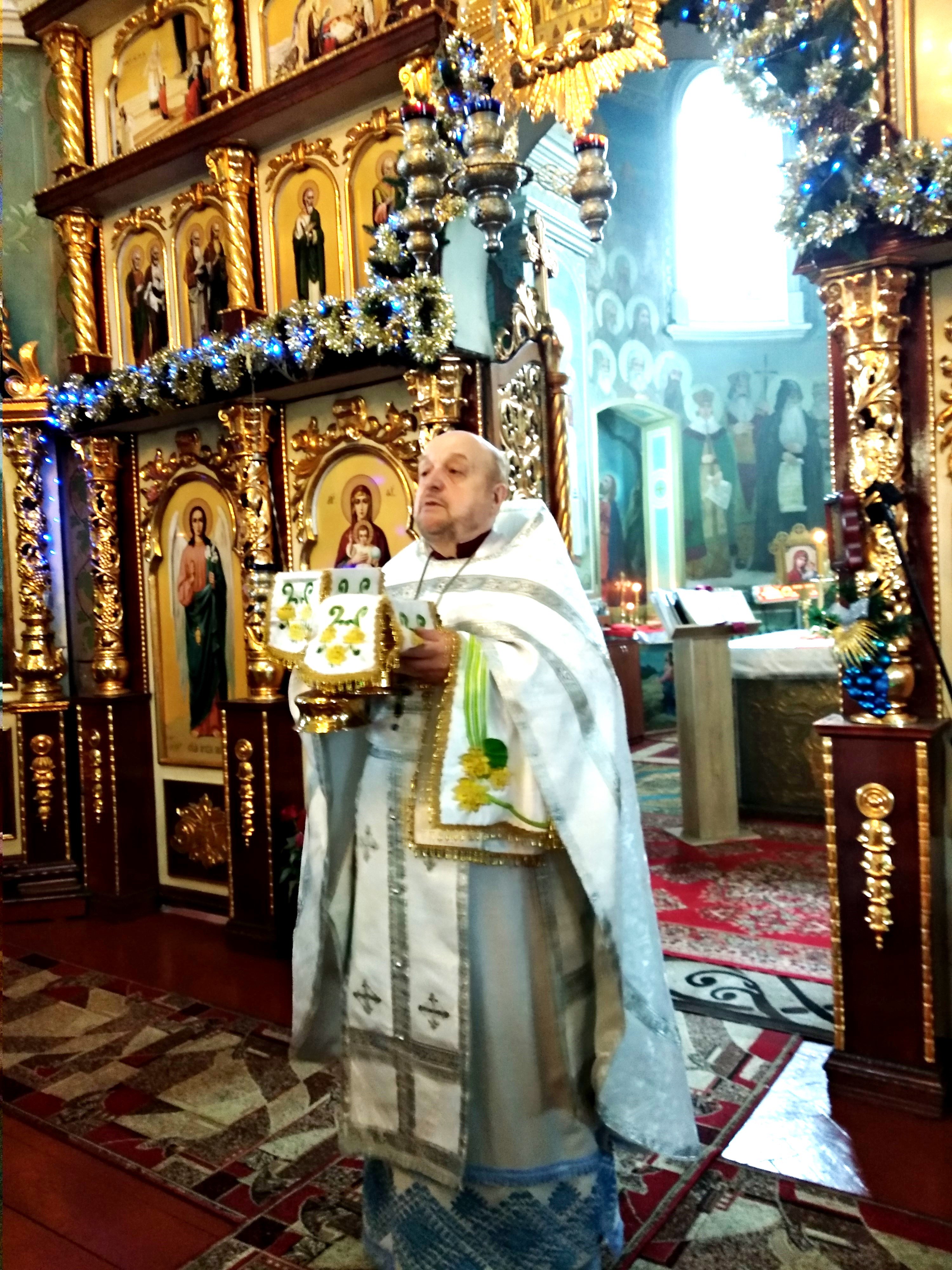 Протоієрей Зіновій Ромах привітав віруючих зі світлим святом Різдва Христового та зачитав Різдвяне послання митрополита Житомирського і Новоград- Волинського Никодима.