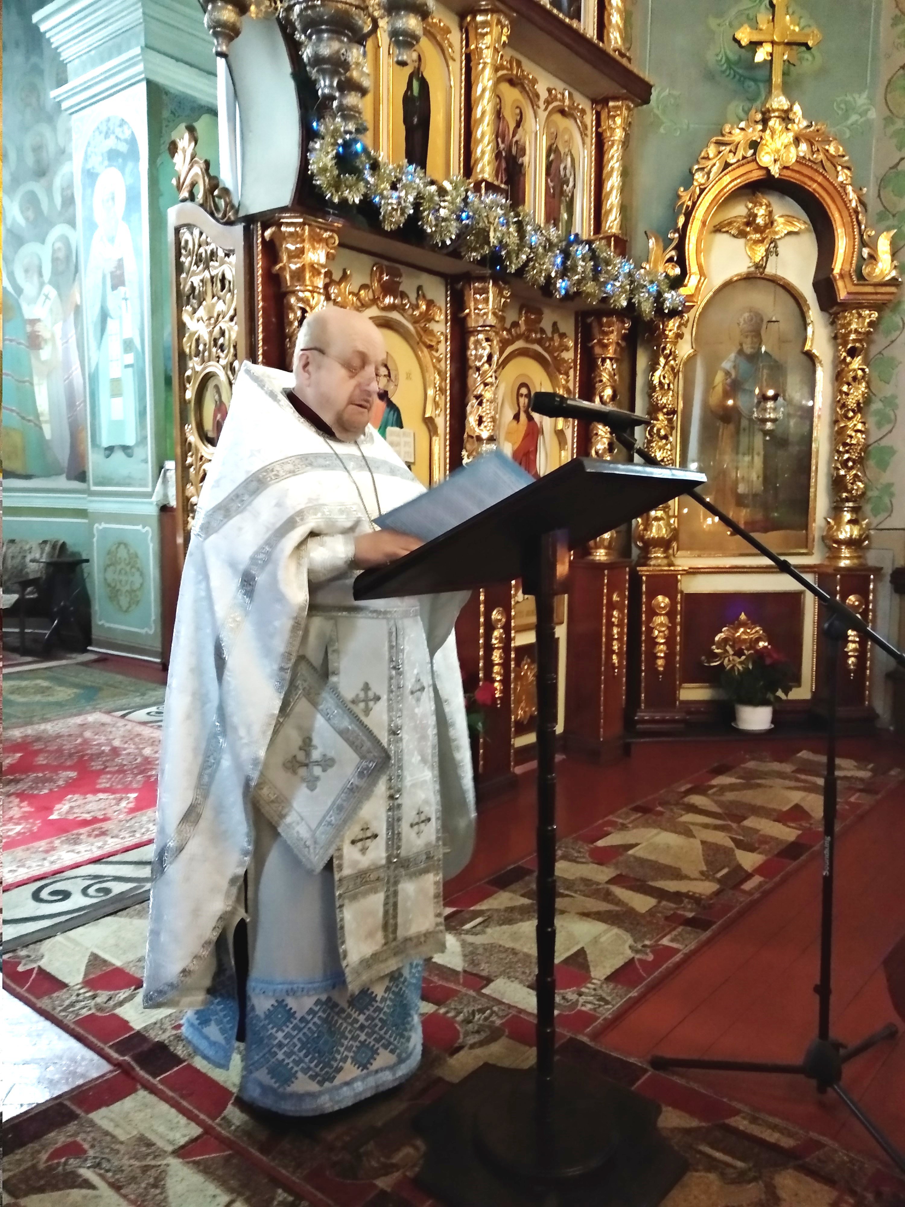 У своїй проповіді отець Зіновій наголосив: «Сьогодні, вшановуючи Пресвяту Богородицю, просімо в Неї миру для нас і нашої Батьківщини. Благаймо, щоб покрила нас Своїм чесним омофором у час важких випробувань, захистила наших воїнів, котрі героїчно боронять рідну землю і нашу національну гідність. Просімо, щоб дала сили вистояти у війні і побороти ворога. На фронті гинуть наші захисники та захисниці, славні сини і дочки України. Над могилами тих, хто поклав свої життя на полі битви за Вітчизну, майорять синьо-жовті прапори… Ми маємо дякувати їм за життя… Ви чули в словах Євангелія, як плаче Рахиль за своїми дітьми і не може втішитись. І сьогодні вона плаче за нашою змученою Україною, яку маємо відбудовувати, маємо загоювати її рани… Не забуваймо слова святого апостола Павла: «сила Божа здійснюється в немочi». Долаючи випробування, ми маємо зміцнюватися, любити Бога і ближніх своїх. Нехай молитви наші до Господа зігріють воїнів, які виборюють перемогу добра над злом…»