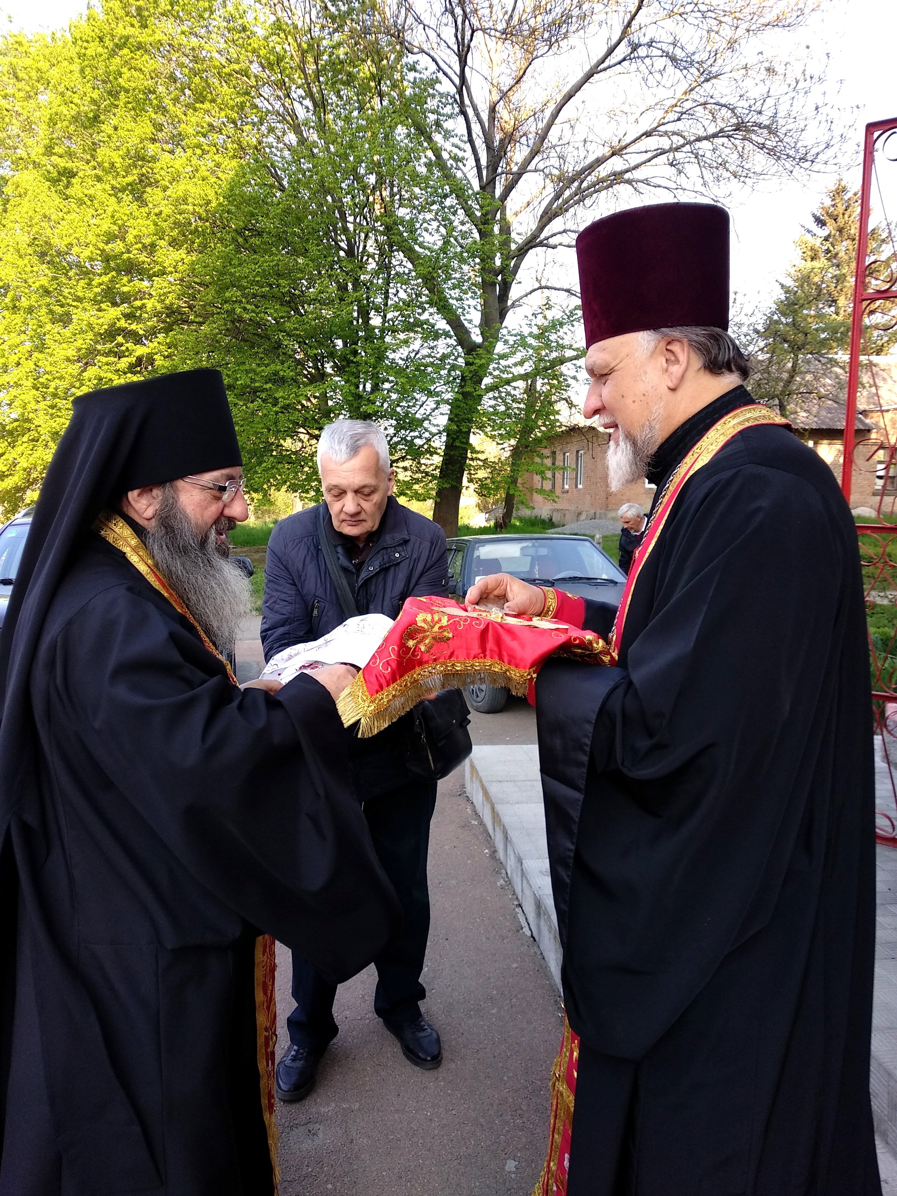 Шосте травня – сонячне проміння з небес, квітучі дерева і вкриті зеленню галявини… У народі говорять, що цього дня весна приходить на землю. Духмяним короваєм, теплими словами та привітними посмішками зустріли благочинного Бердичівського округу архімандрита Варфоломія (Бойкова) настоятель Свято-Георгіївського храму протоієрей Сергій Головащенко та парафіяни.