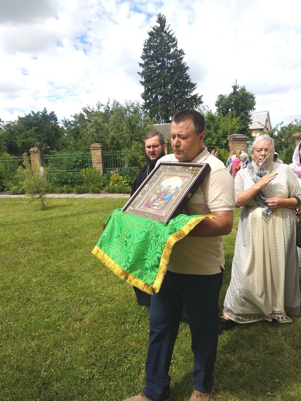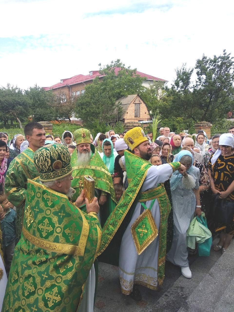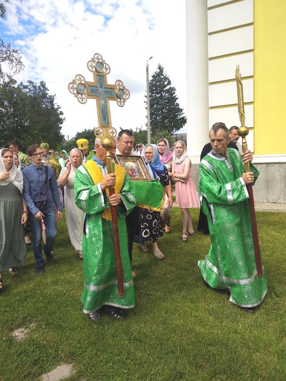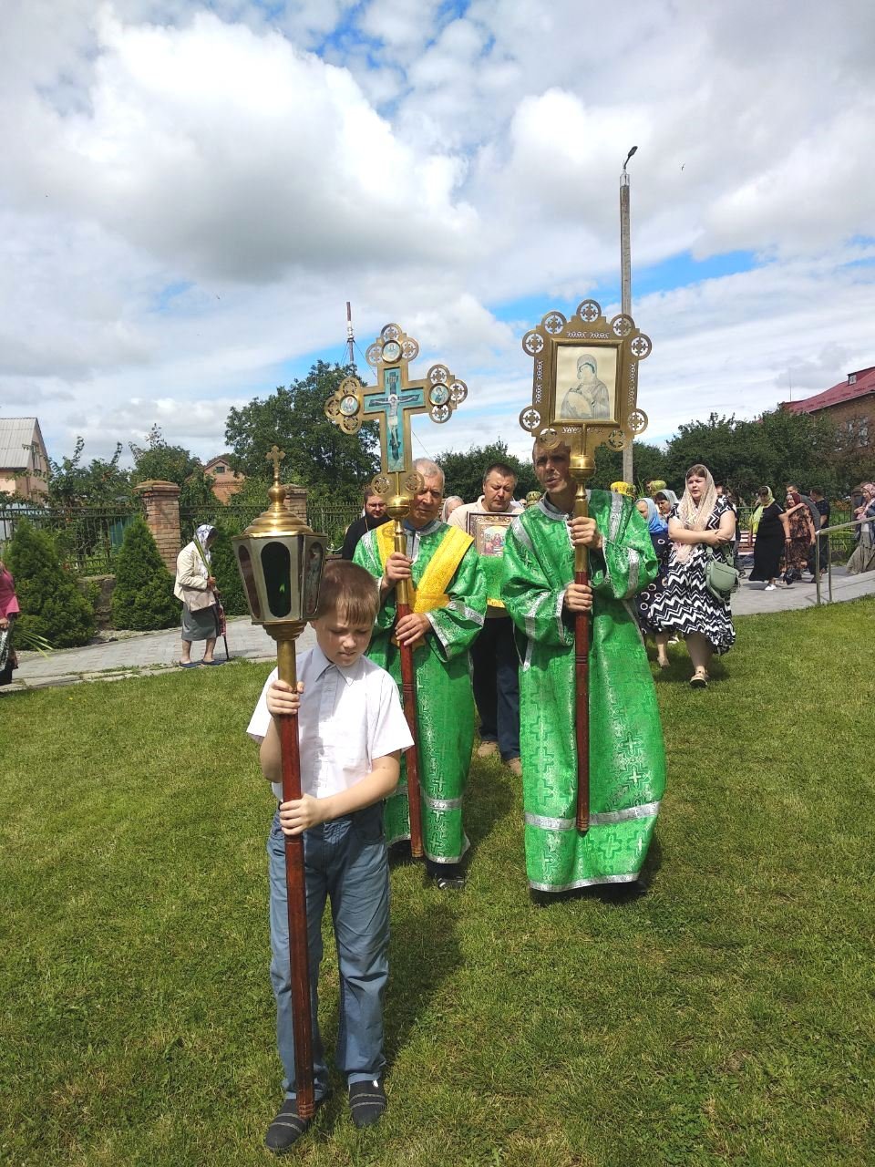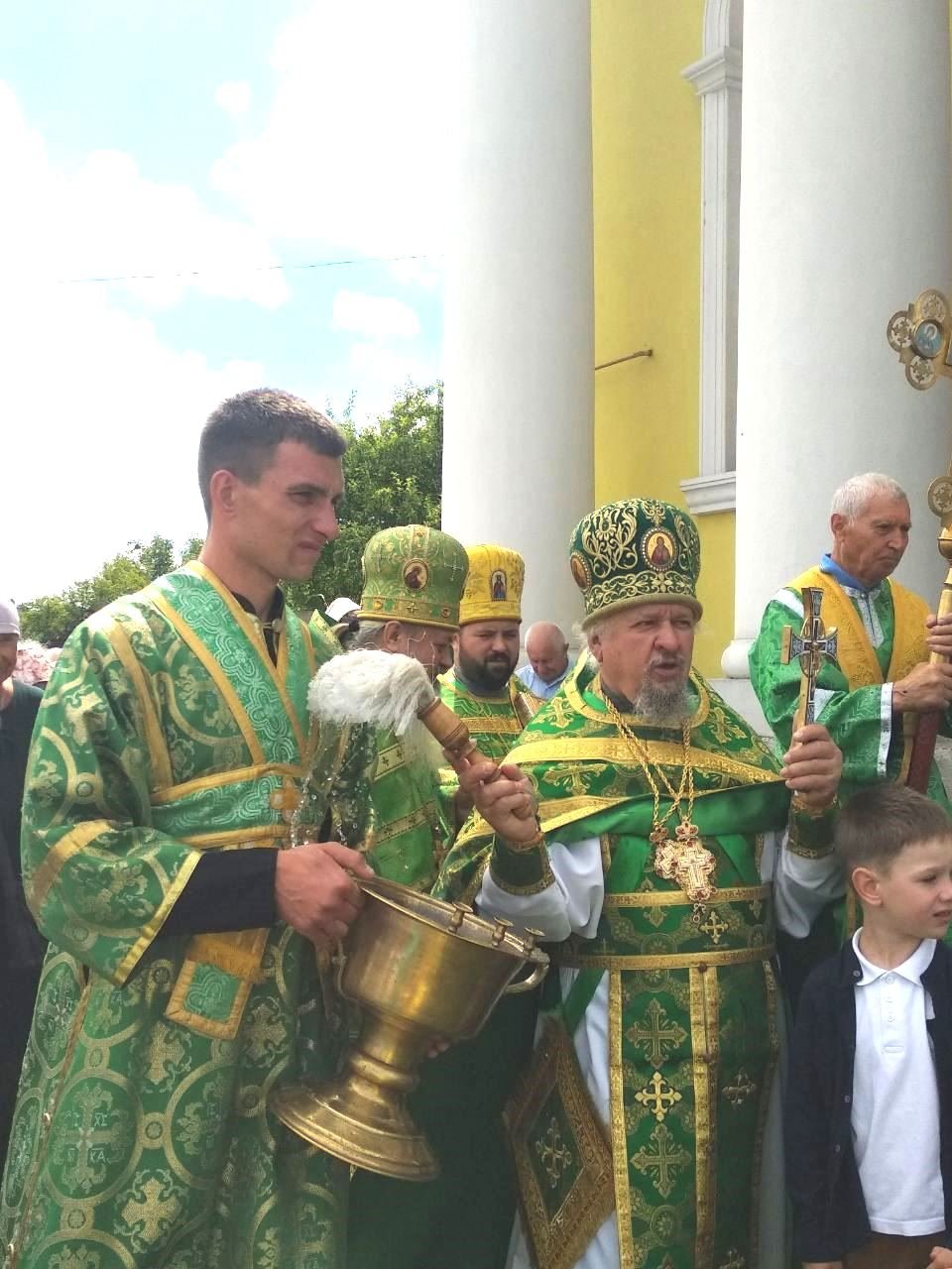 Хресним ходом із православними святинями та молитовними піснеспівами духовенство і віряни обійшли навколо храму. Сонце зігрівало землю промінням, а над нею синів небесний купол із білими хмаринками, посміхалися люди, окроплені святою водою, і серця були сповнені теплом та радістю.
