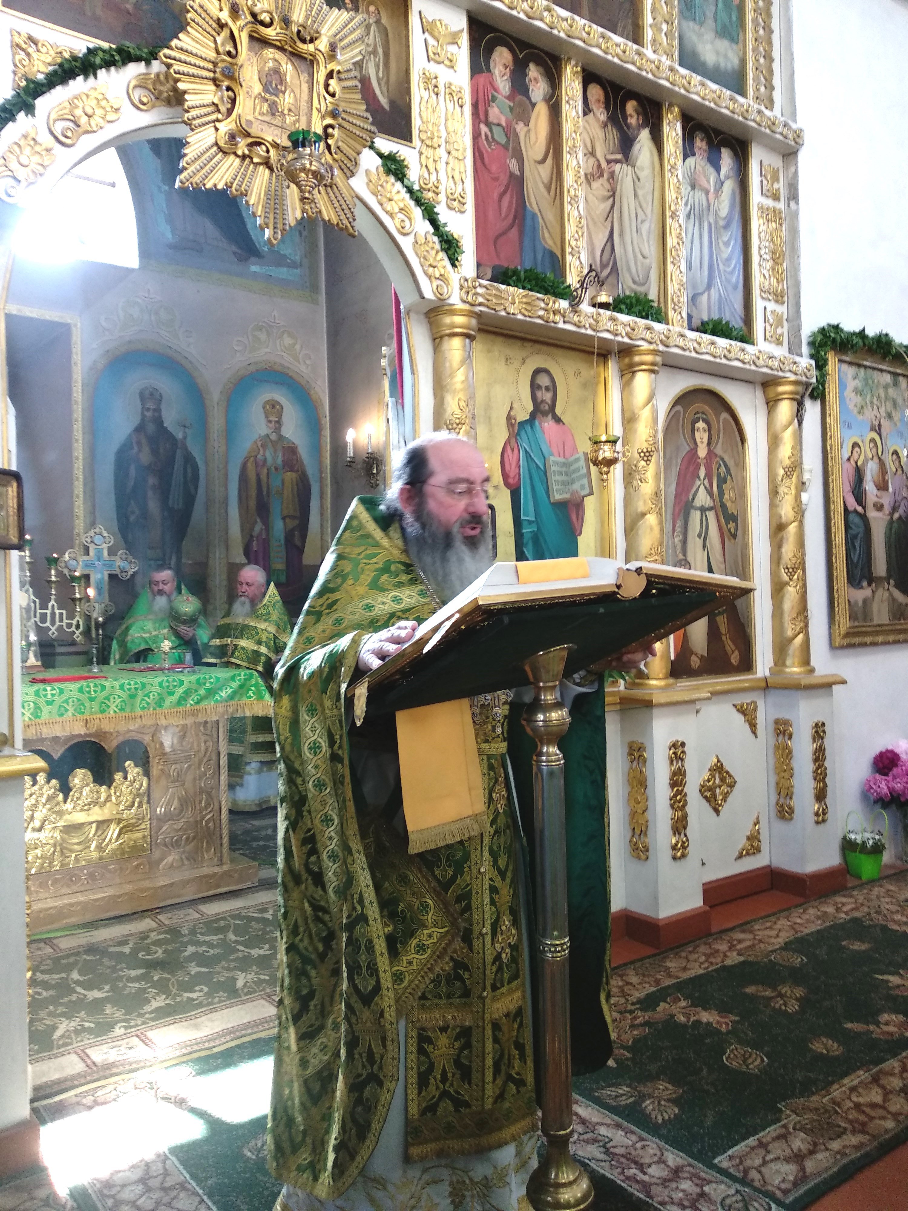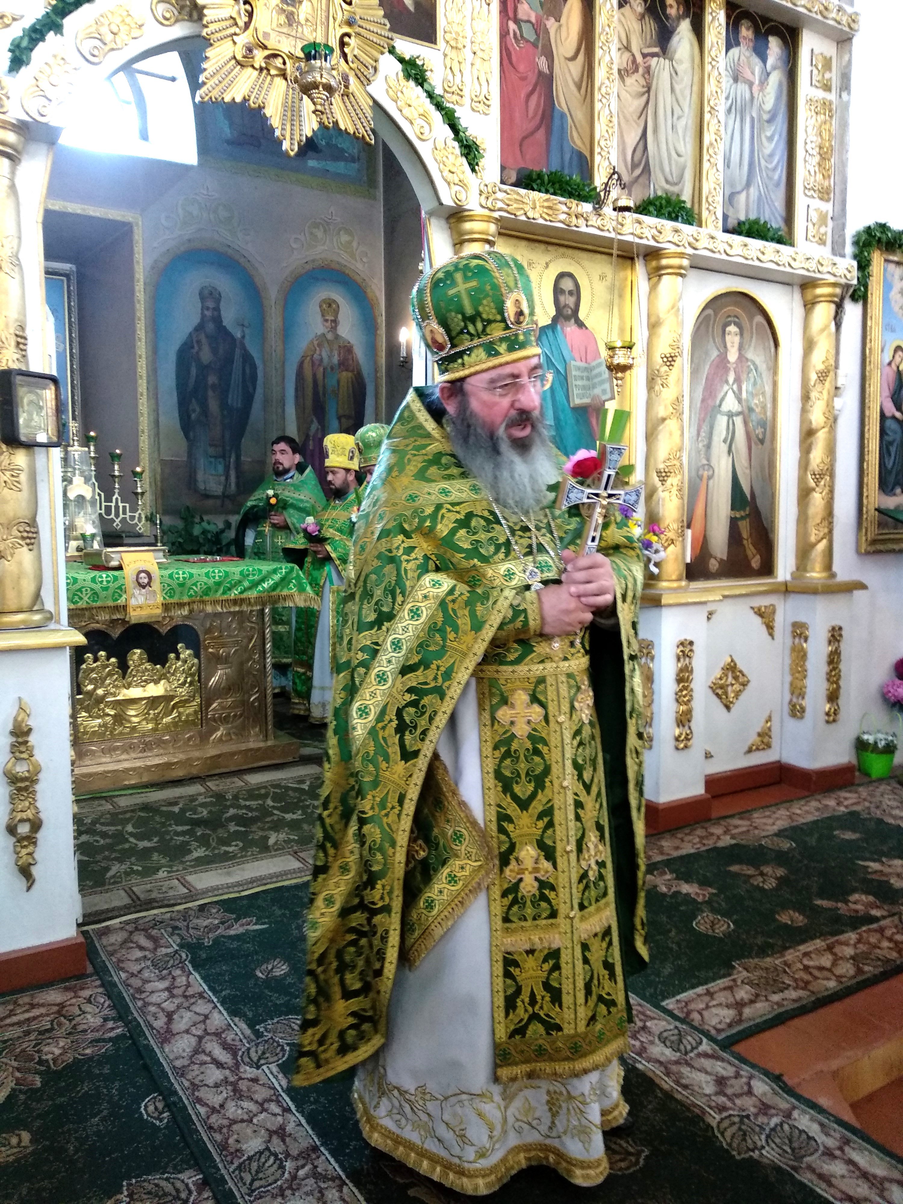 Благочинний Бердичівського округу архімандрит Варфоломій (Бойков) спрямував погляд у часи великої події – Зішестя Святого Духа на апостолів, що протягом тисячоліть пронизує світ життєдайною силою. Святі апостоли за словами Господа Ісуса, Який Вознісся на небо, перебували в Єрусалимі невідступно в молитві. І у 10-й день після Вознесіння, під час старозавітного свята П'ятидесятниці, вперше явив Себе світу Дух Святий відчутним і явним чином, зійшовши з небес на голови апостолів Христових у вигляді вогненних язиків при потужному шумі бурхливого вітру. Вони духовно переродили апостолів. Дух Святий нагадав їм усе, що чули від Господа Ісуса Христа, і дав нечувану світом мудрість та дивовижний дар говорити мовами всіх народів, якими вони мали понести проповідь Євангельську. Він дав їм чудове знання всього Писання... «Почалася історія Церкви, яка народилася в день П’ятидесятниці, – звернувся до віруючих словами проповіді отець благочинний. – Ця подія відображається в наших серцях, це наше загальне свято, ми – діти Матері Церкви. І нині, у цей святковий день, відчуваємо радість бути разом, єдиною духовною сім’єю. Нехай на скрижалях серця буде накреслена благодать Духа Святого…»