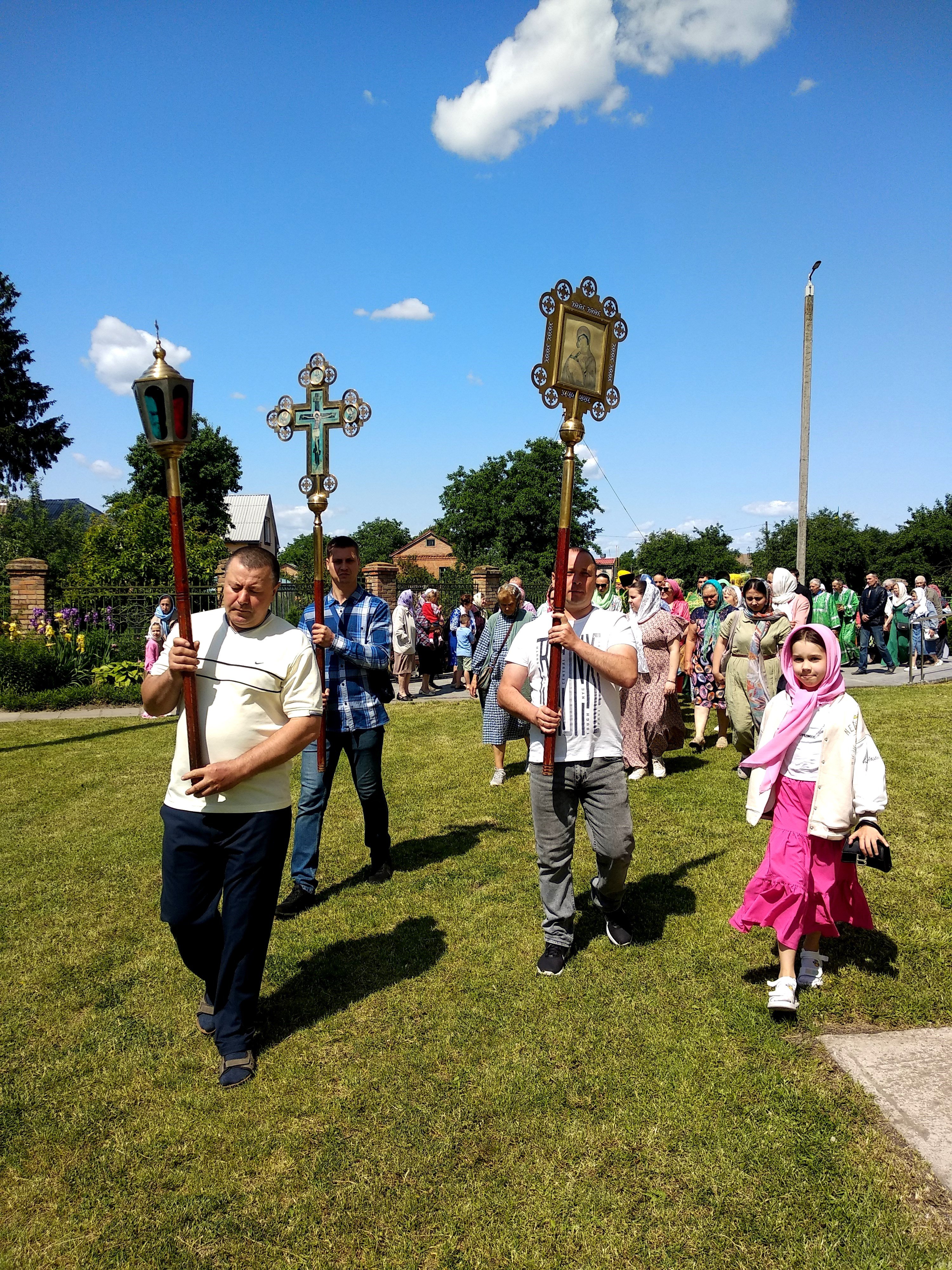 Хресним ходом духовенство та віруючі обійшли навколо храму, несучи радість про послану благодать Святого Духа…