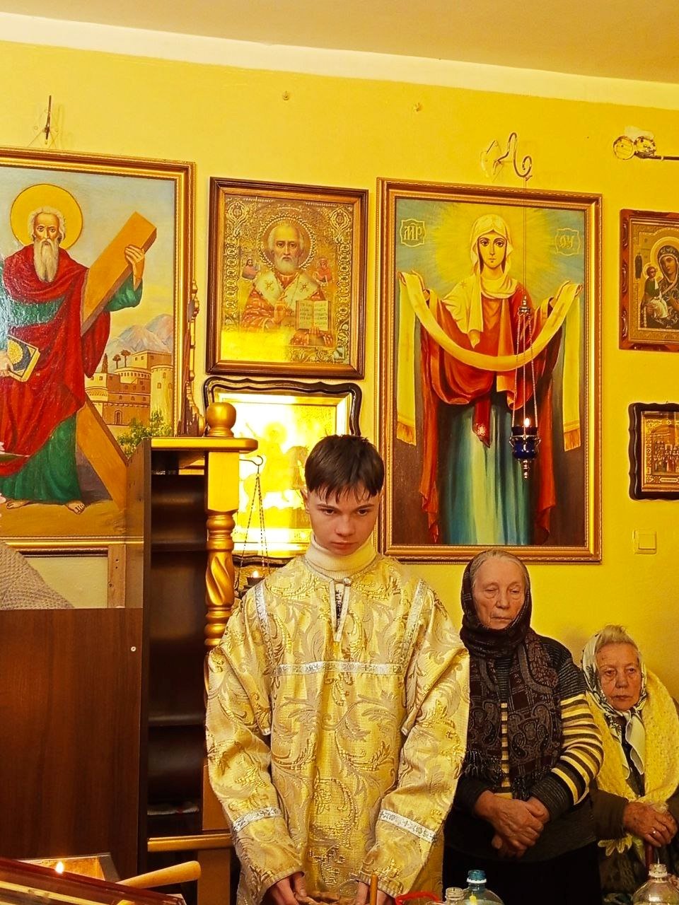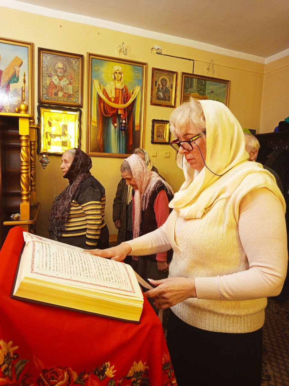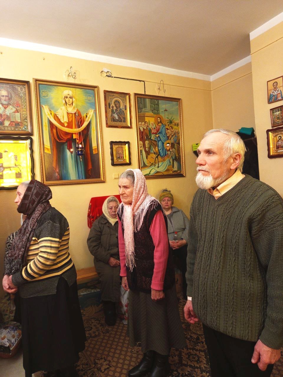 Звучать рядки Євангелія від Луки: «Ныне отпускаешь раба Твоего, Владыко, по слову Твоему, с миром...» Розливаються піснеспіви церковного хору (регент – матінка Валентина Корнющенко). «У Стрітенні Господа оточують з одного боку праведність, яка сподівається на спасіння не від себе, – це Симеон, і суворе в пості й молитвах життя, оживлене вірою, – це Анна, з іншого боку – чистота сутнісна, всебічна та непохитна – це Діва Богоматір і смиренна, мовчазна покірність і відданість волі Божій – це Іосиф Обручник. Перенеси всі ці духовні настрої у своє серце і побачиш Господа, Котрий не приноситься, а Сам приходить до тебе, приймеш Його в обійми серця, і заспіваєш пісню, яка пройде небеса і звеселить усіх ангелів і святих» (святитель Феофан Затворник).