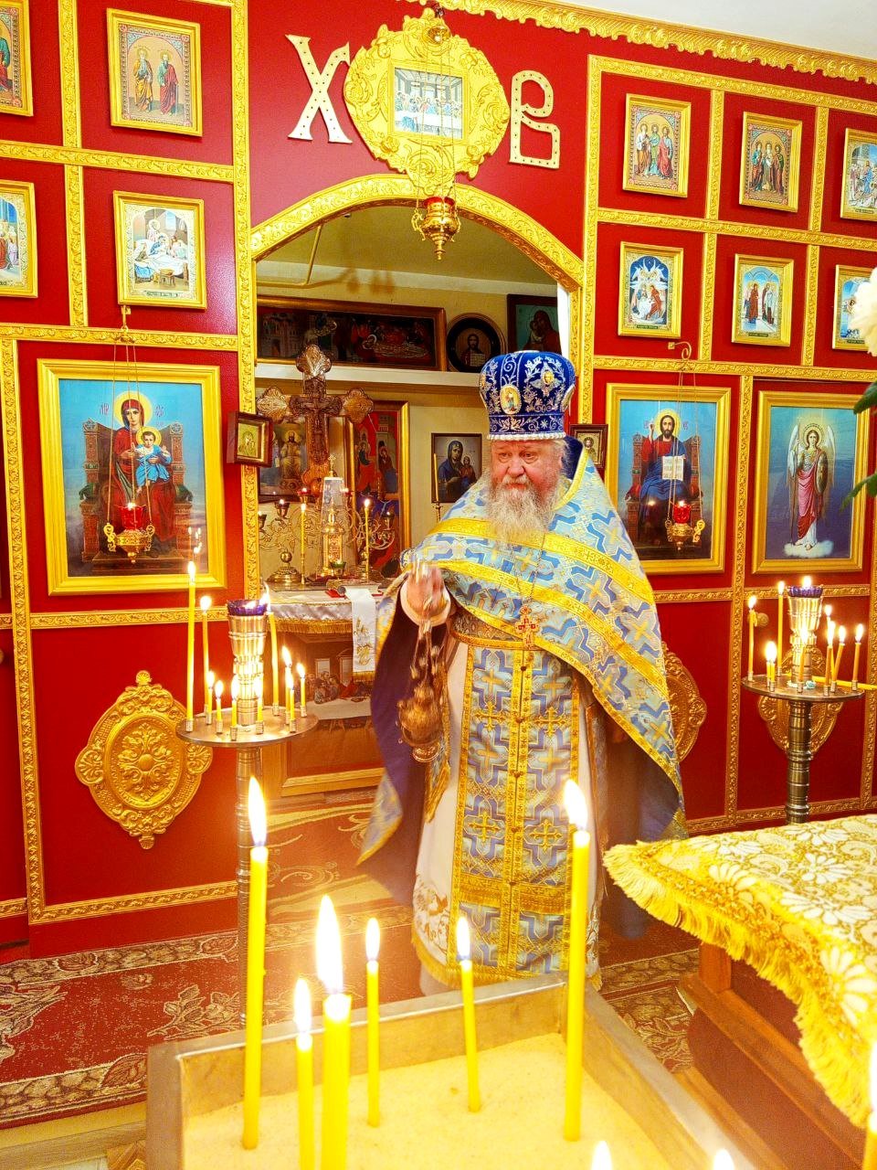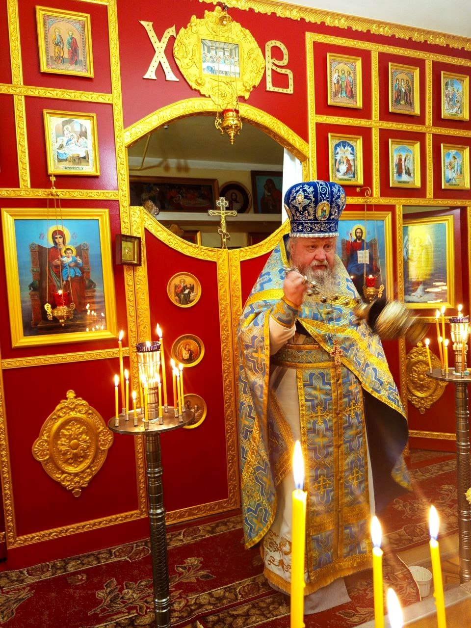 Урочисту Божественну Літургію звершує благочинний Бердичівського округу архімандрит Варфоломій (Бойков) у співслужінні настоятеля Свято-Георгіївського храму протоієрея Андрія Корнющенка.
