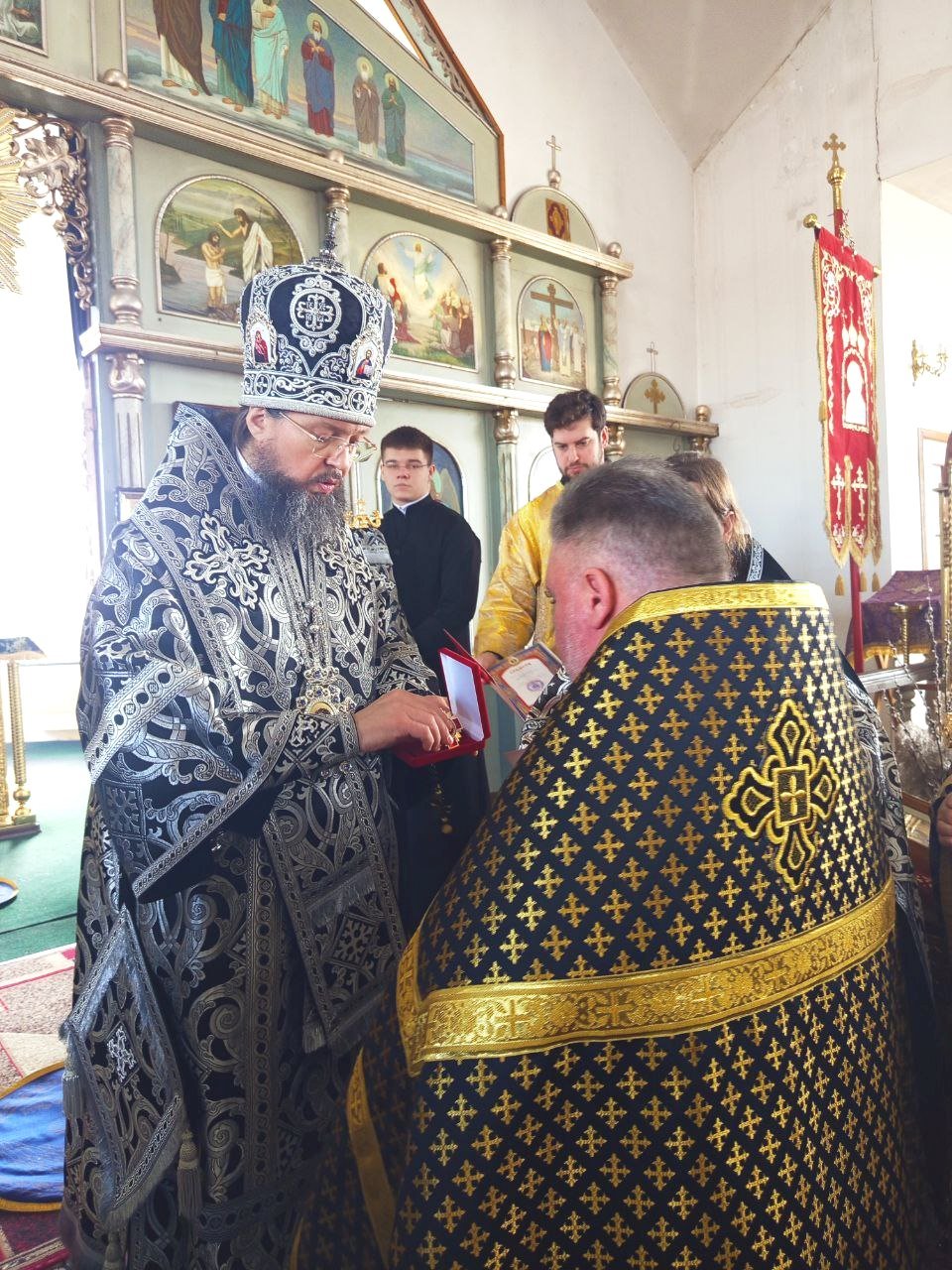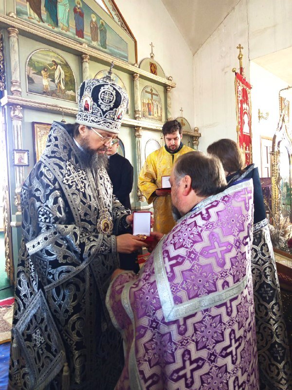 З благословення Блаженнішого Митрополита Київського і всієї України Онуфрія Високопреосвященніший митрополит Житомирський і Новоград-Волинський Никодим вручив Грамоти за заслуги перед Українською Православною Церквою та орден святого великомученика Георгія Побідоносця настоятелю Свято-Покровського храму с. Никонівка протоієрею Іоанну Попадичу та настоятелю Свято-Михайлівського храму с. Хажин протоієрею Владиславу Асафову, орден Святого Ярослава Мудрого – настоятелю Свято-Петропавлівського храму с. Рея протоієрею Євстафію Гавриліву.