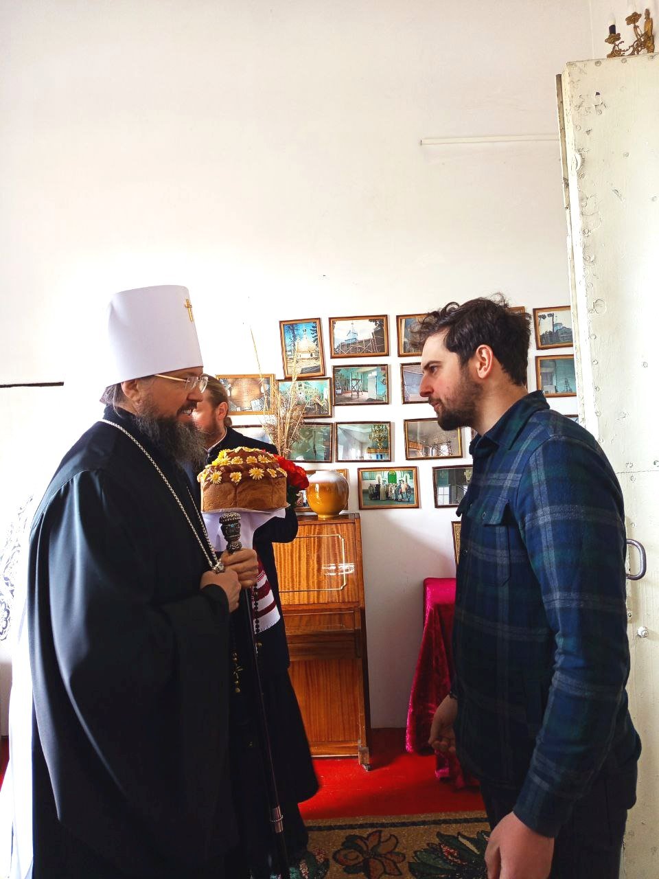 З глибокою повагою та любов’ю, духмяним короваєм і квітами зустрічали шанованого гостя – митрополита Житомирського і Новоград-Волинського Никодима – духовенство на чолі з благочинним Бердичівського округу архімандритом Варфоломієм (Бойковим) та парафіяни храму. Вітали теплими словами свого архіпастиря, дякуючи за батьківську опіку і молитовну підтримку.