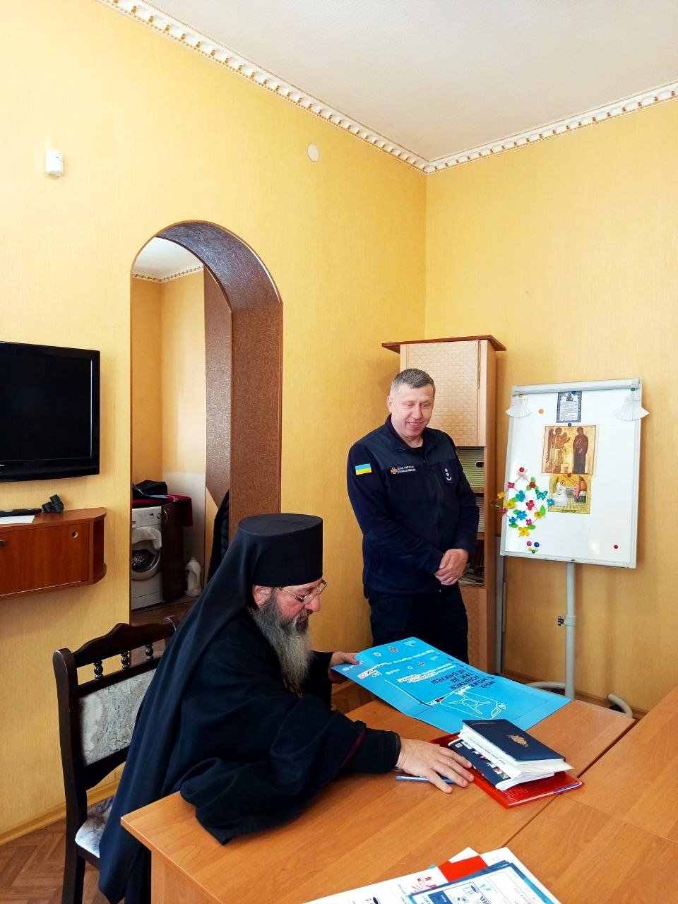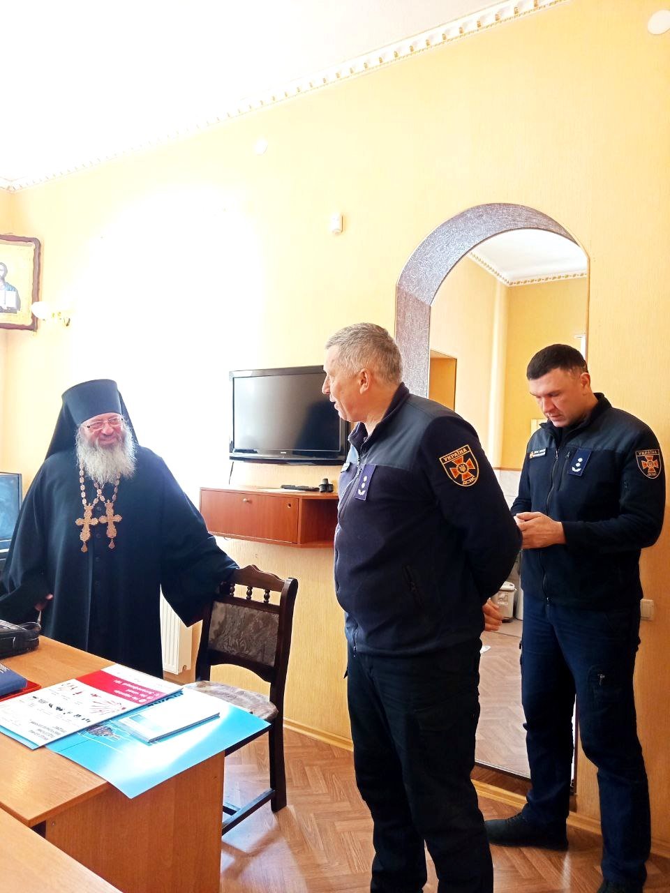 Благочинний Бердичівського округу архімандрит Варфоломій (Бойков) подякував представникам відділу запобігання надзвичайним ситуаціям Бердичівського районного управління ГУ ДСНС України в Житомирській області за постійну взаємодію, роз’яснювальний інструктаж та важливу інформацію.