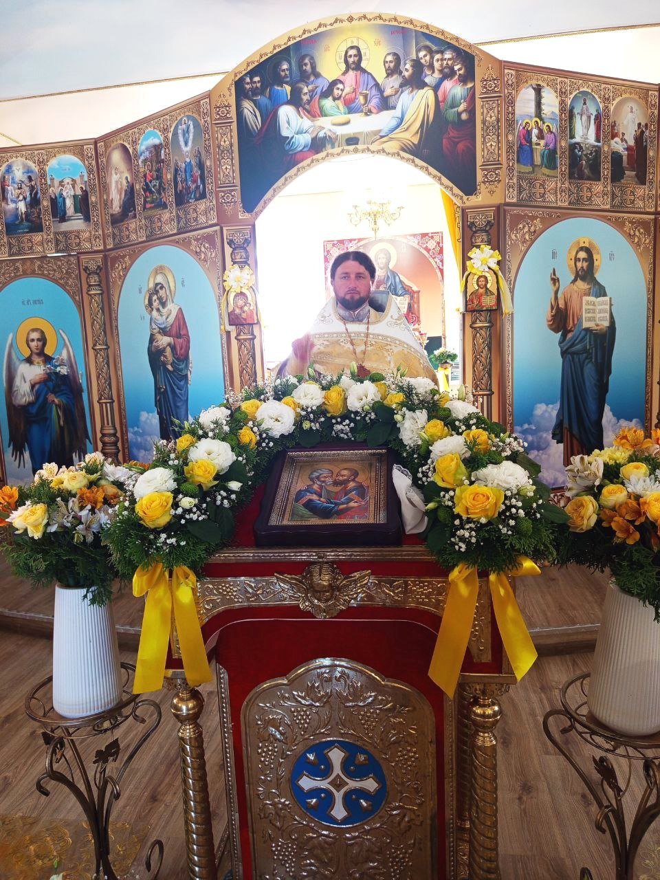 У церкві настоятель Свято-Михайлівського храму с. Поліське Овруцько-Коростенської єпархії ієрей Андрій Заболотний сердечно привітав вірян, нагадавши про жертовну дорогу християнського життя святих первоверховних апостолів Петра і Павла: «Господь обрав їх, таких різних за походженням та характерами, щоб вони зрозуміли просте слово Боже… Апостоли стали єдиними у служінні Христу і були покликані проповідувати Євангеліє – благу звістку любові та спасіння. Щоразу, читаючи Святе Письмо, ми відкриваємо нове, бачимо нову висоту… Вшановуючи святих апостолів, ми вчимося бути міцними у вірі, жити за Заповідями Божими. Приходячи до храму, ми співаємо славу Господу не лише устами, а й серцем. Наші молитви – розмова з Богом, преображення душі. Сьогодні ми отримуємо радість духовного єднання. Господь огортає нас Своєю любов’ю. Коли звучить: «Христос посеред нас», ми відповідаємо: «І є, і буде!» Ці слова лягають на серце… Любіть Бога й ближніх своїх, любіть нашу державу, нашу рідну землю!»