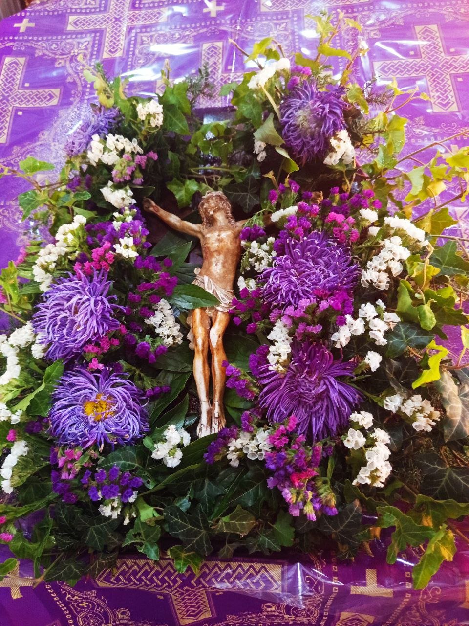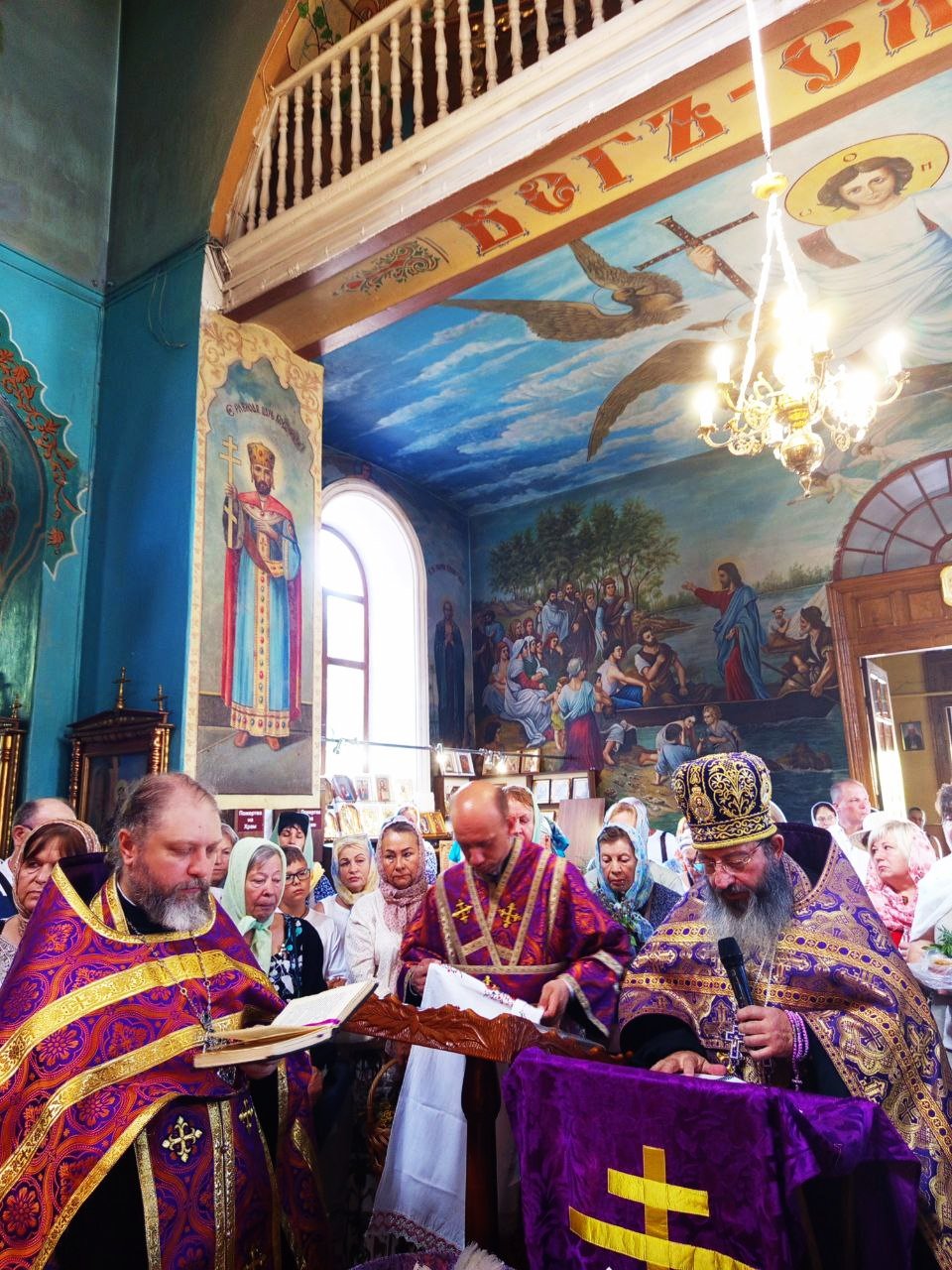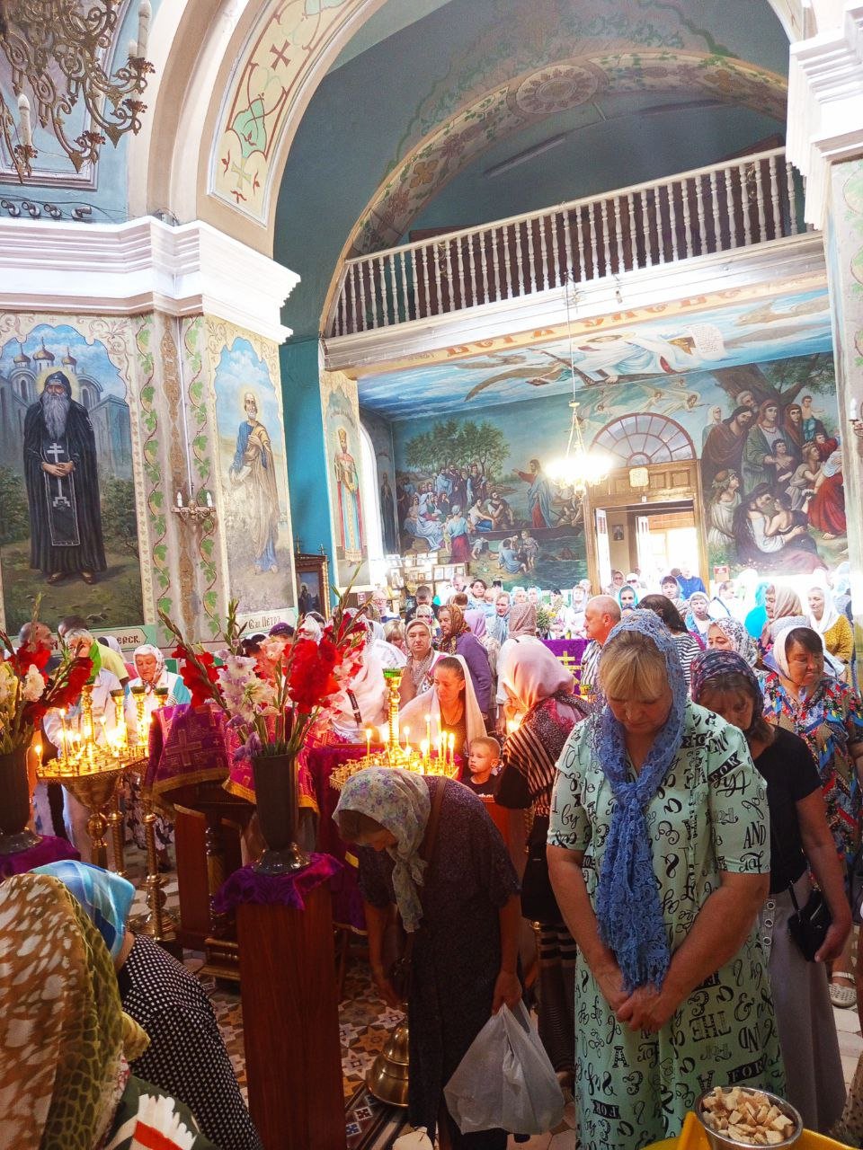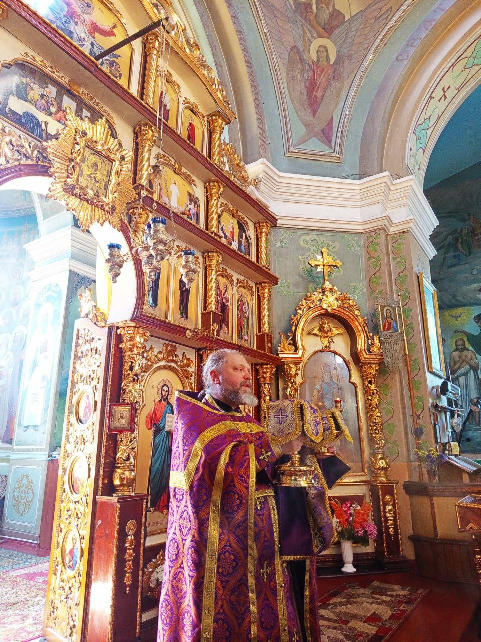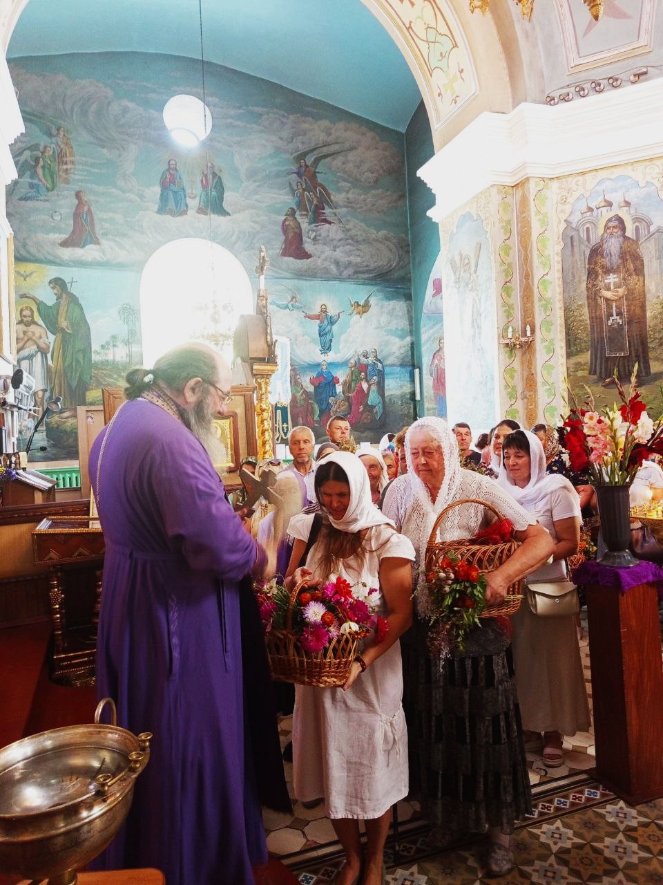 Божественну Літургію у головному храмі благочиння звершує клірик Свято-Миколаївського собору протоієрей Віталій Кльон. Шириться молитовний спів: «Спаси, Господи, люди Твоя и благослови достояние Твое, победы на сопротивныя даруя и Твое сохраняя Крестом Твоим жительство…» У храмі – тонкий аромат квітів і трав, у руках вірян – пахучі букетики та святкові кошики…