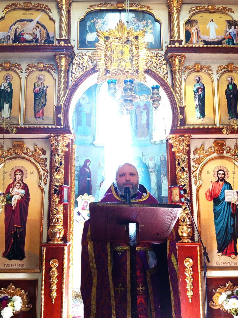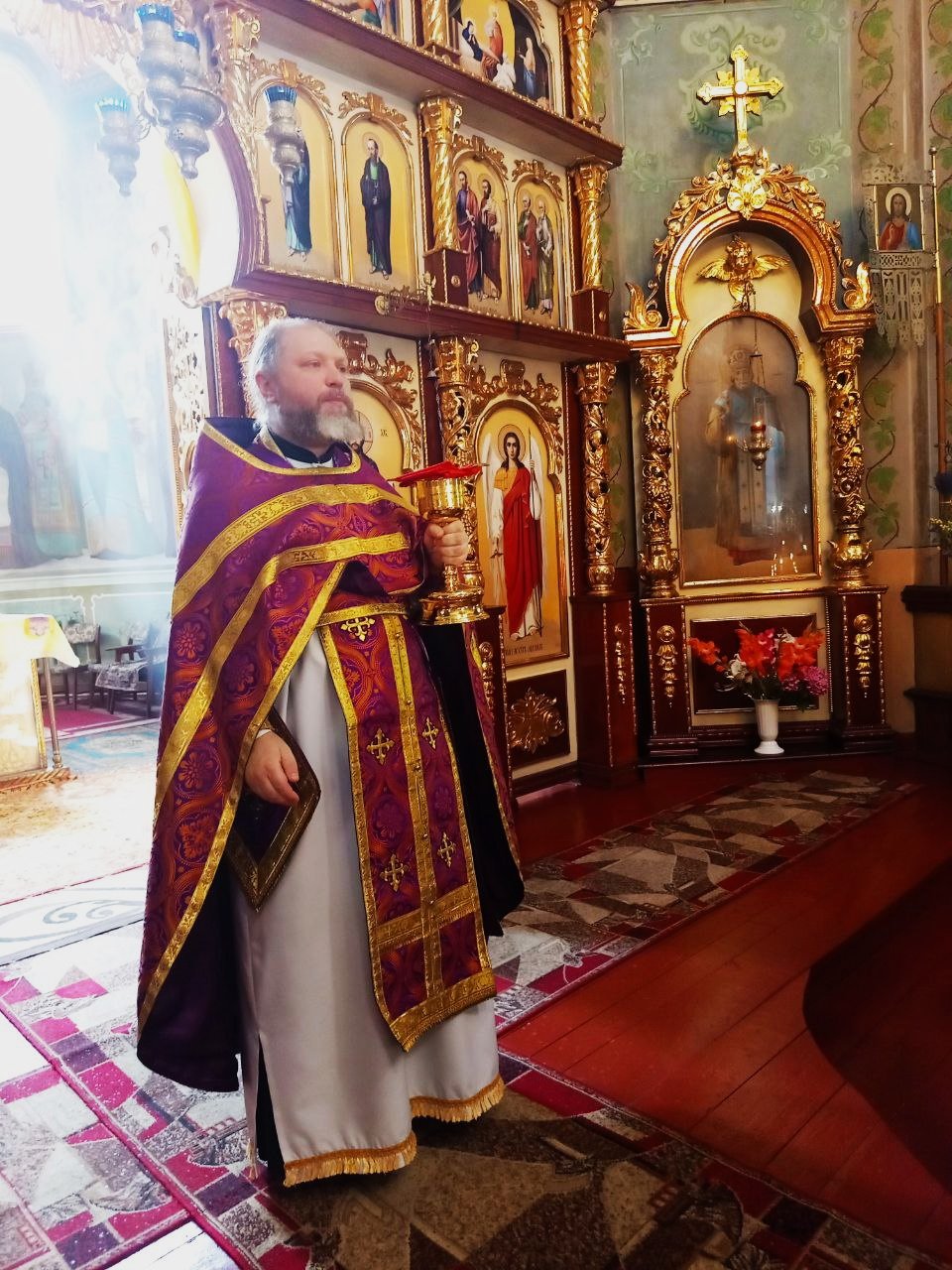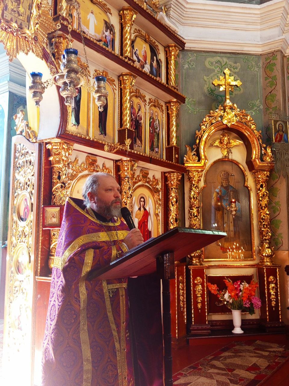 «Тричі на рік Святий Хрест особливим чином виносять із вівтаря для поклоніння вірянам. Він нагадує про спасительну жертву Ісуса Христа заради роду людського. – звернувся до пастви зі словом проповіді протоієрей Віталій Кльон. – У Святому Причасті Тіла і Крові Христових ми стаємо єдиним цілим із Господом. Піст та молитва допомагають наблизитися до Бога, нагадують нам про хресну жертву Христа й таку чесноту, як зречення від суєти світу. В апостола і євангеліста Іоанна Богослова в 1-му Соборному посланні є такі слова: «Не любіть світу, ні того, що в світі: хто любить світ, у тому немає любові Отця…» «Дружба зі світом є ворожнеча проти Бога», – говорить апостол Яків. Цю просту істину розкриває нам Церква, застерігаючи від спокус світу… Хрест – символ любові, що спонукає до терпіння, а піст – час покаяння, період зосередженого несення свого особистого хреста, яким душа очищається і спасається…»