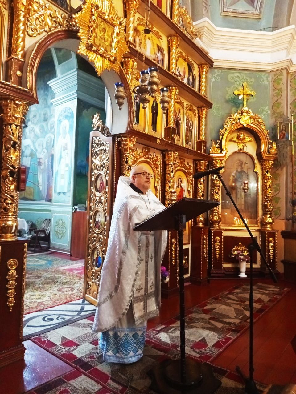 Протоієрей Зіновій Ромах привітав усіх зі святою неділею і Днем Незалежності України: «Понад 11 років російської війни проти України – це геноцид. Ми сьогодні із вдячністю та молитвою згадуємо тих, котрі протягом століть самовіддано боролися за нашу вільну державу. Дай Боже сил та кріпості духу нашим воїнам і скорішого миру!»