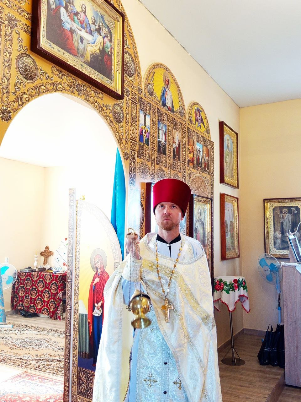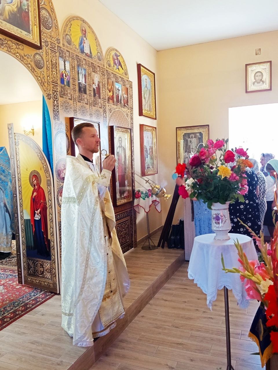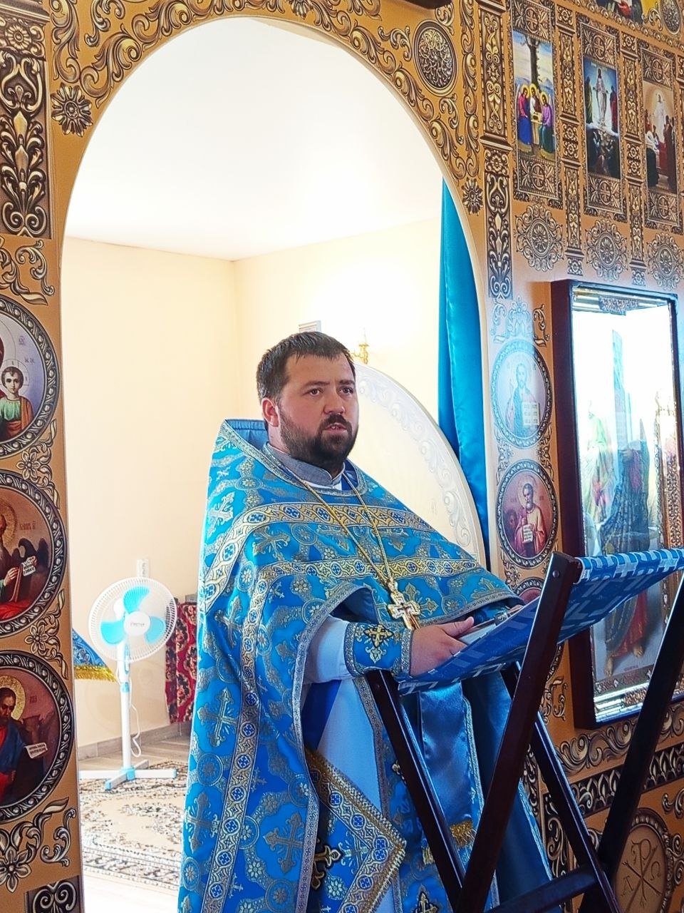 Настоятель Свято-Успенського храму протоієрей Олександр Худяков звернувся до всіх зі словами проповіді, нагадавши давні події: «Апостоли чудесним чином зібралися в Єрусалимі, щоб стати свідками переходу Божої Матері від земного життя до вічного, сходження душі і тіла Пресвятої Діви до Небесного престолу. Скорбота поєднувалася з радістю та розумінням величі цієї події. Пресвята Богородиця благословила всіх, небо розступилося, кімнату осяяло світло, і апостоли побачили, як Сам Христос, оточений ангелами, прийняв душу Своєї Пречистої Матері… Люди співали псалми і несли запалені свічки. Хор ангелів славив Царицю Небесну. Господь забрав Свою Матір на небо, щоб Вона була з нами завжди. Мати Божа є Матір’ю всіх людей… Пресвята Богородиця являє нам Свою безмежну милість і молиться за кожного з нас, за весь християнський рід, за все людство. Нехай за молитвами Божої Матері Господь захистить нашу землю, наших воїнів-оборонців і пошле мир Україні».