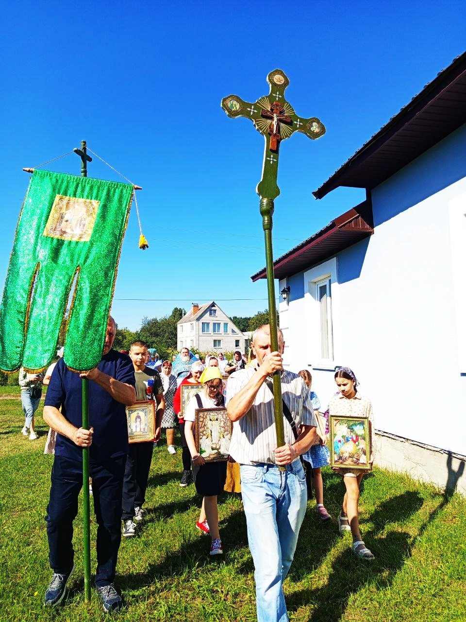 Хресним ходом священники і віряни обійшли навколо храму з хоругвами, православними святинями й молитовними піснеспівами. Блакитне небесне склепіння над головою, теплі промені серпневого сонця, яскраві фарби природи, піднесений настрій і почуття близькості до Бога… А на душі – спокій та умиротворення…