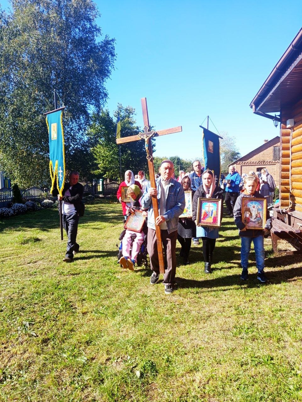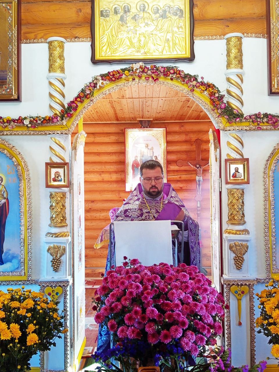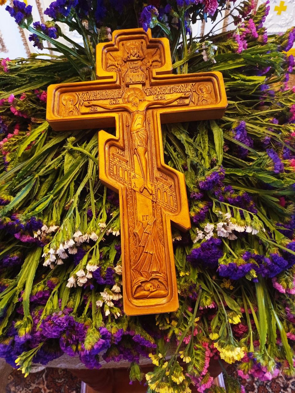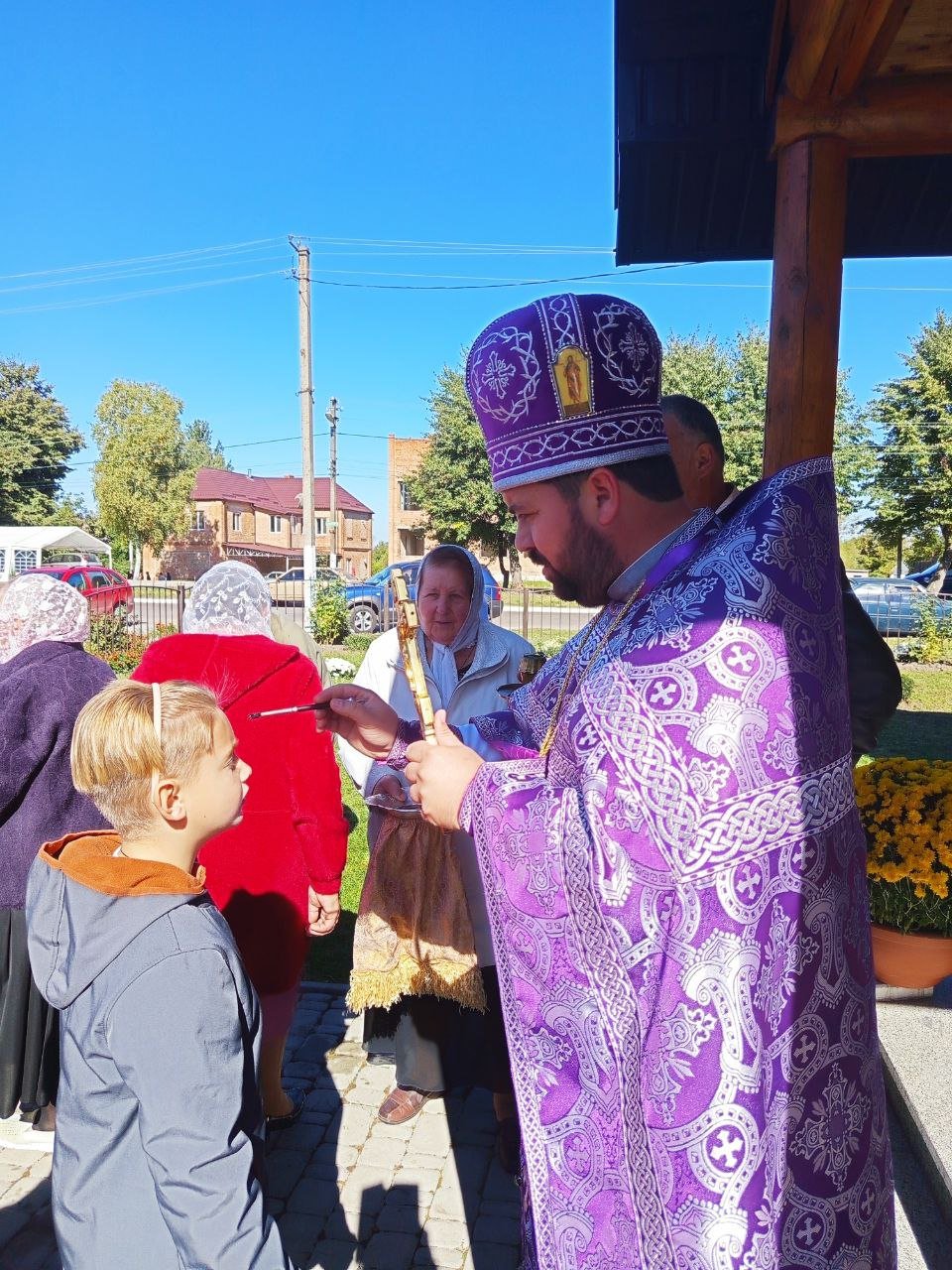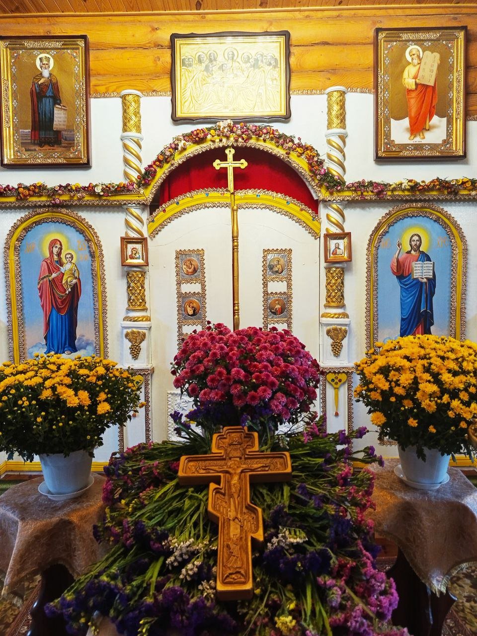 Синє небо, яскраві барви природи, сяючі на сонці накупольні хрести. Навколо променіють пишні хризантеми. У храмі всюди рясніють різнобарвні квіти. Парафіяни наче сплели вінок любові – мовчазну молитву серця до Бога. На серці квітнула світла радість… «Кресту Твоему поклоняемся, Владыко, и Святое Воскресение Твое славим …» Молільники схилили коліна перед великою святинею – Хрестом Господнім…