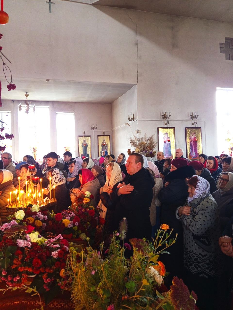 Здавалося, тріумфувала вся природа: пишно рясніли хризантеми, відливало сонячним блиском листя дерев. У храмі – молитовна тиша та спокій, усюди – квіти й зелень. Особливу атмосферу створювали осінні композиції з дарами природи. Від краси та благоліпності на серці теплішало...