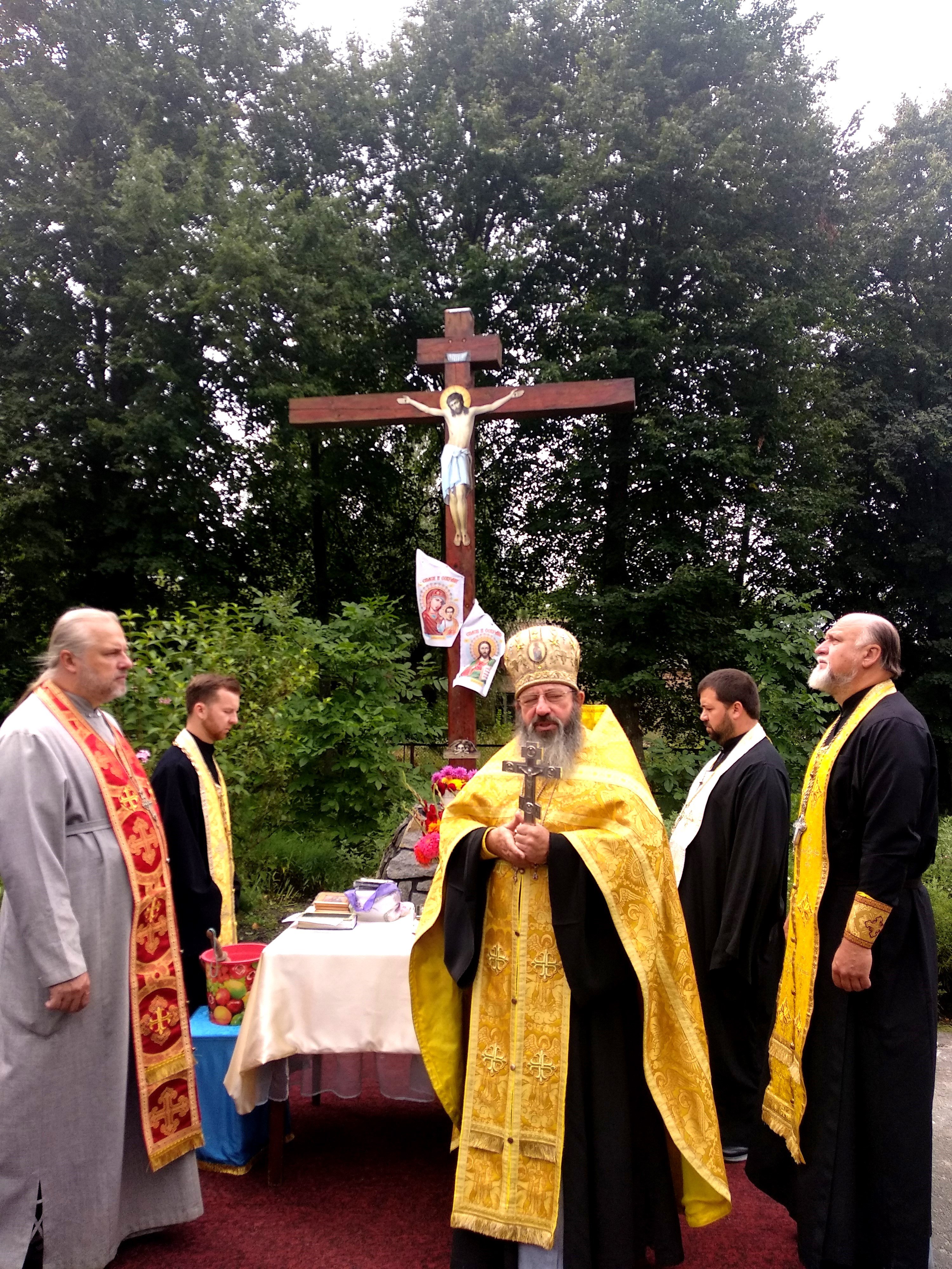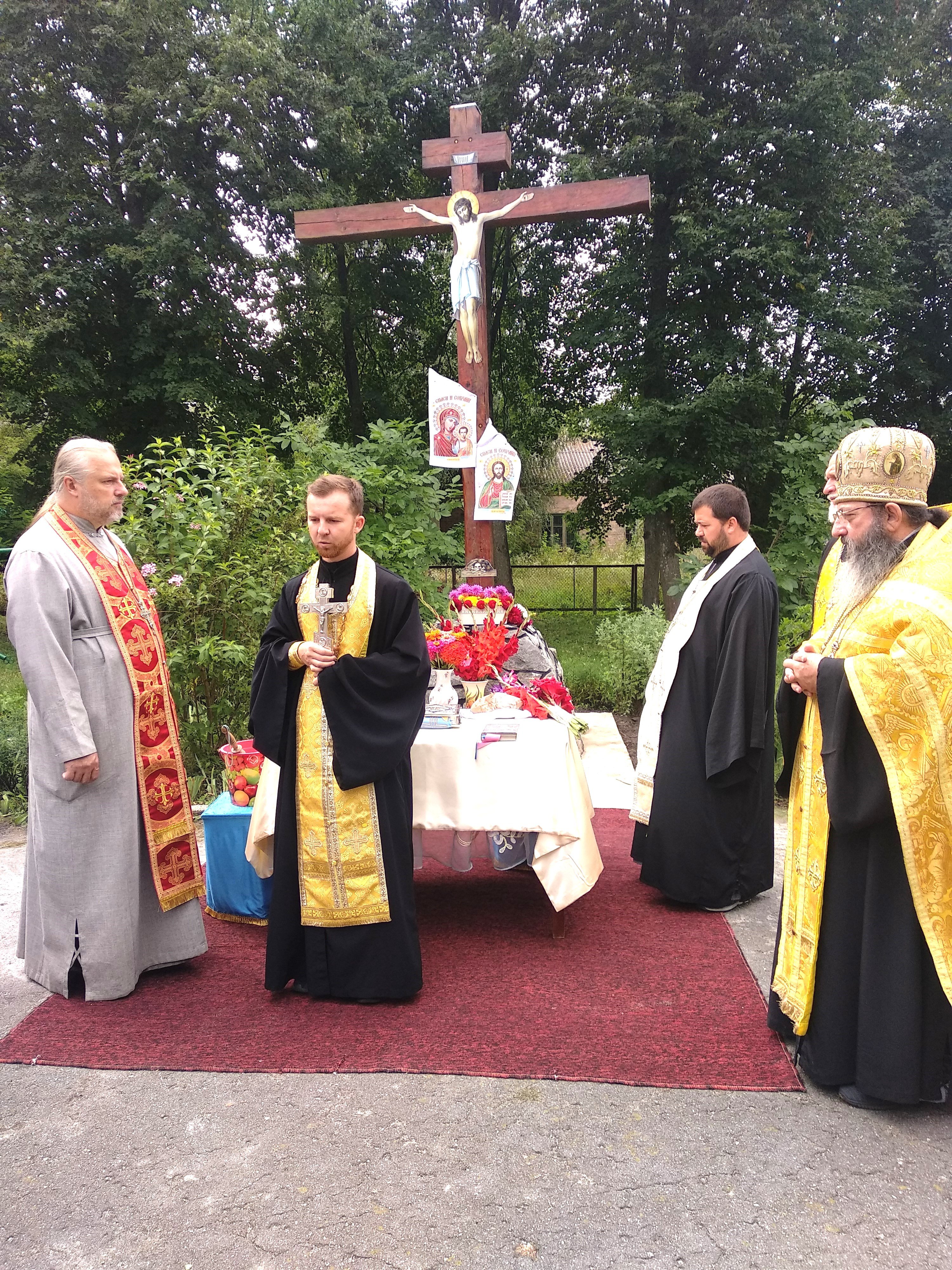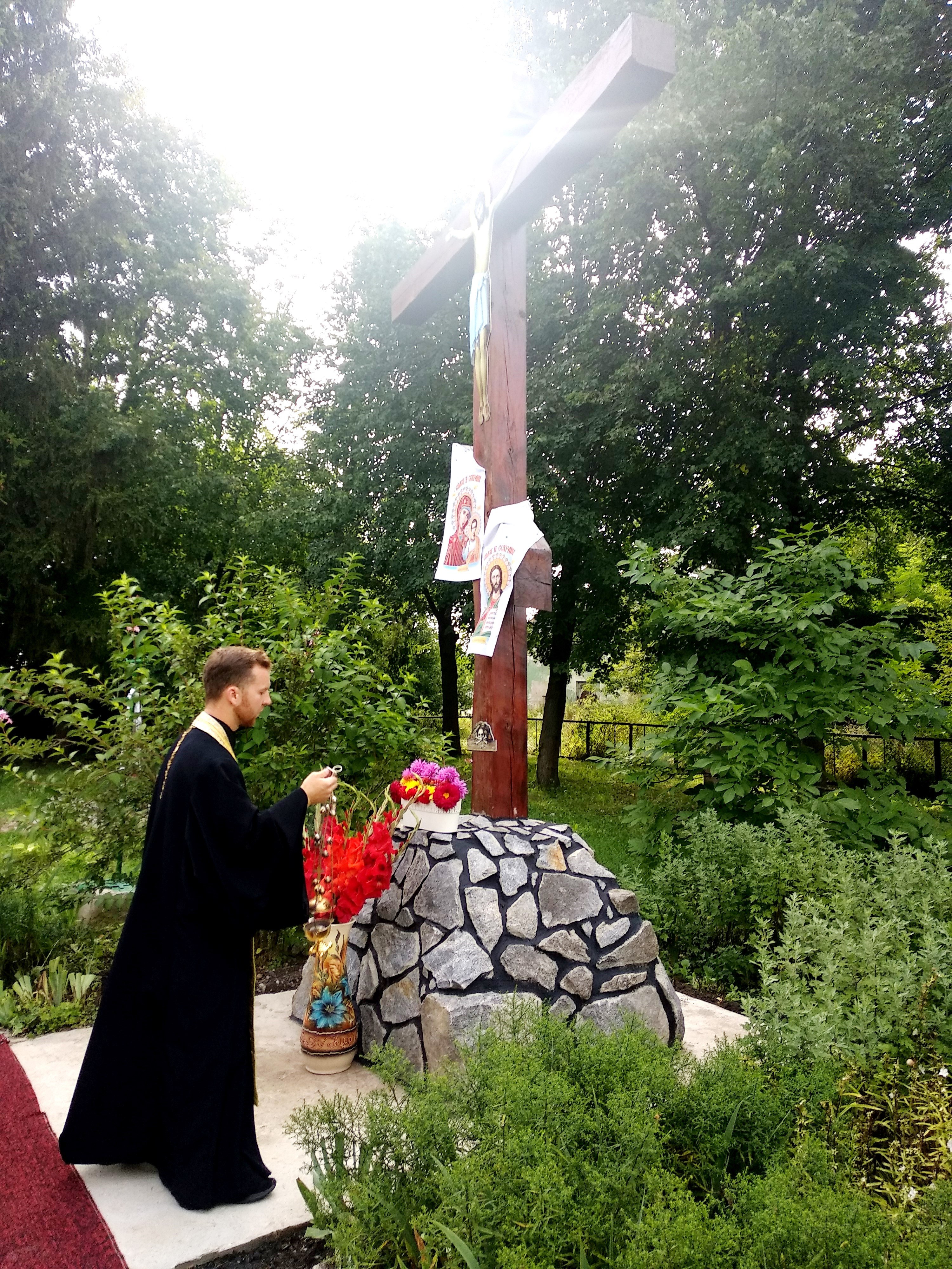 Чин освячення новоспорудженого хреста очолив благочинний Бердичівського округу архімандрит Варфоломій (Бойков) у співслужінні настоятеля Свято-Покровського храму с. Мирославка ієрея Михаїла Худякова, настоятеля Свято-Георгіївського храму м. Бердичева протоієрея Сергія Головащенка, настоятеля храму Різдва Пресвятої Богородиці с. Озадівка протоієрея Ярослава Ігнатюка та настоятеля Свято-Успенського храму с. Осикове протоієрея Олександра Худякова. Під небом линули молитви до Господа Вседержителя: «Посли благодать Твою, Жизнодавче, и крест сей освяти, и всем людем твоим яви его быти помощь и утверждение», «И якоже крестом мир от греховнаго осуждения свободил еси: сице рабов Твоих, сие крестное знамение Тебе от души верно приносящих, силою креста Возлюбленнаго Сына Твоего всегда победители быти греха яви и вся земная и небесная Твоя Благая им даруй, и крестом всегда к благому всех верных наставляя, к восприятию небеснаго венца приведи…»