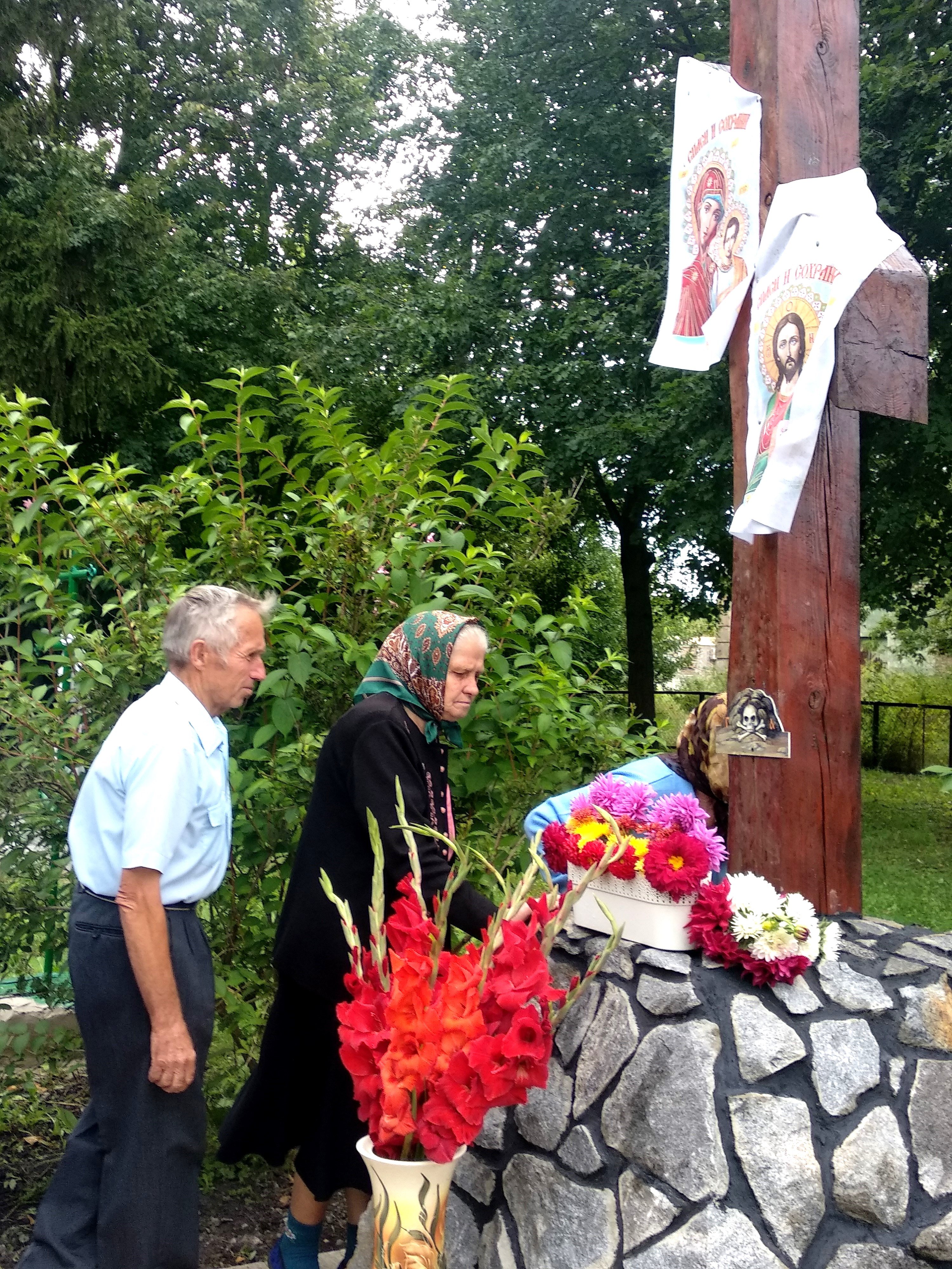 Височіє поблизу храму Поклонний хрест на кам’яному підніжжі – символ спасіння роду людського, символ перемоги Господа Ісуса Христа над смертю. Віруючі турботливо оздобили рушниками та квітами святиню – свідчення великої любові до Бога.