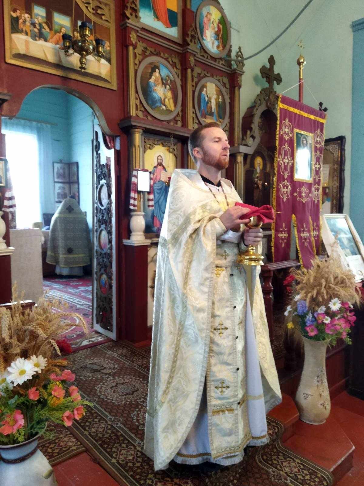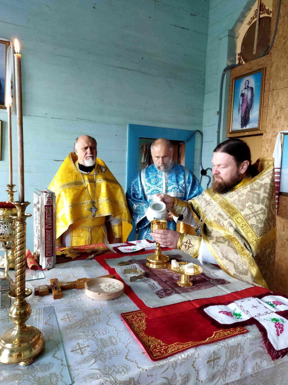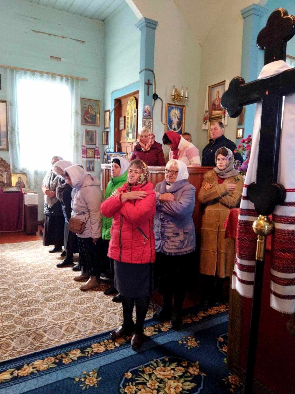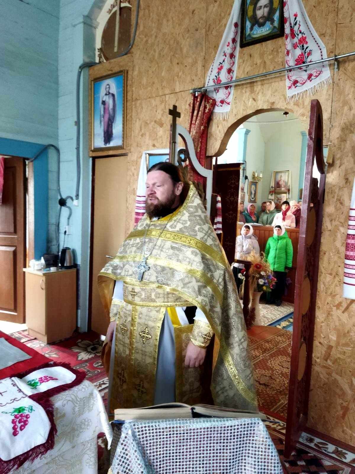 Святкового дня після водосвятного молебню Божественну Літургію очолив благочинний Черняхівського округу архімандрит Мануїл (Бицик), раніше – багаторічний настоятель храму Святого Апостола і Євангеліста Іоанна Богослова с. Обухівка. Йому співслужили ієрей Михаїл Худяков, котрий нині духовно окормляє парафію, та протоієрей Андрій Корнющенко і протоієрей Сергій Головащенко.
