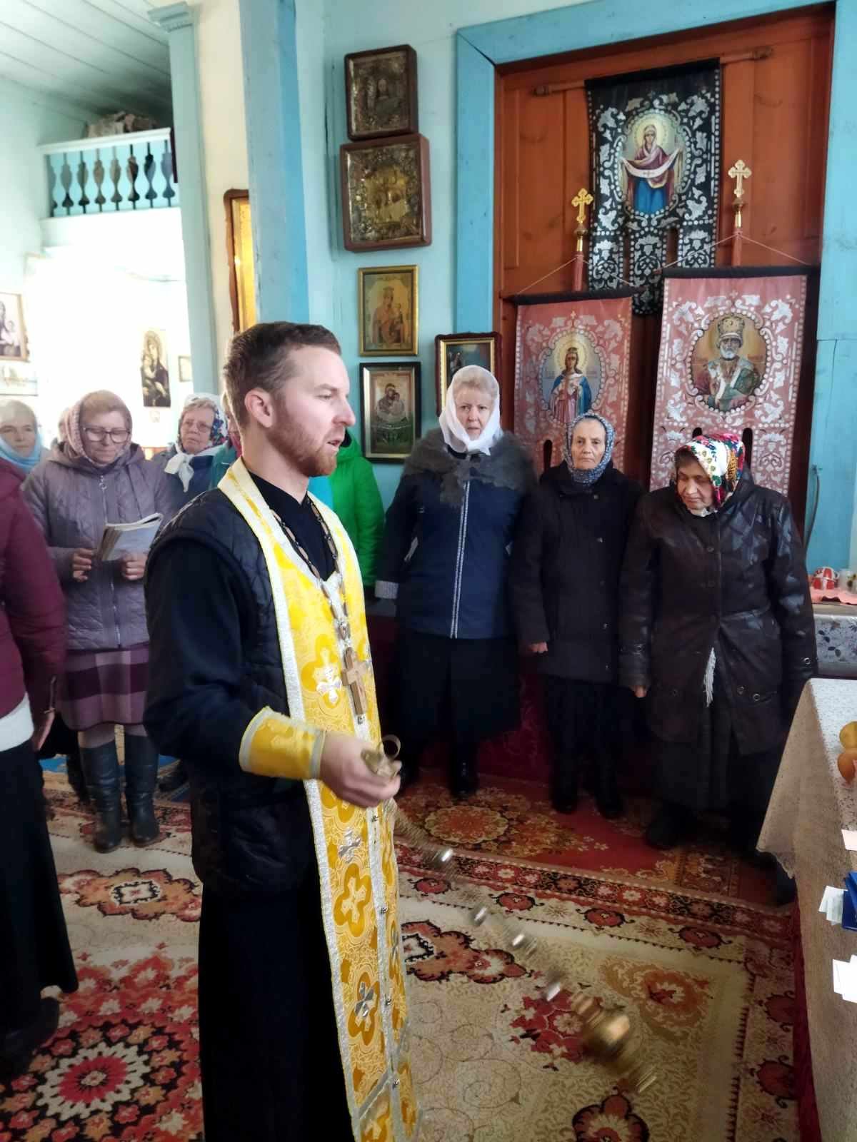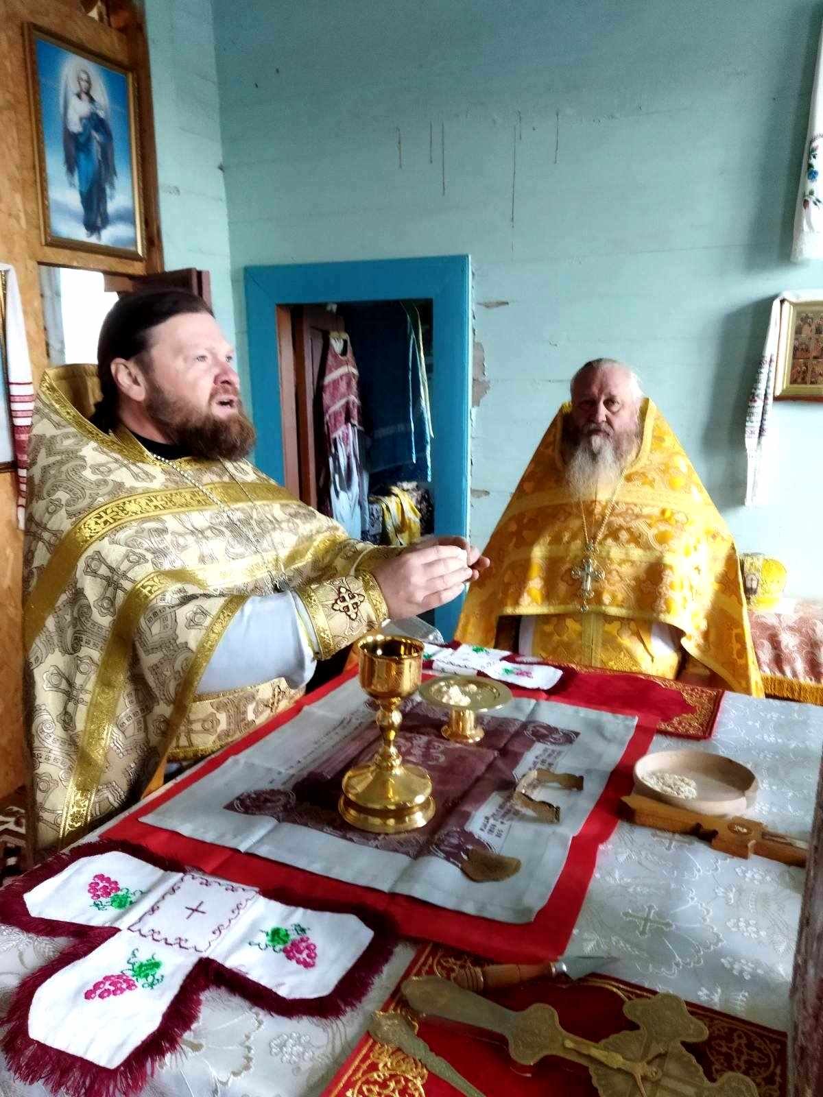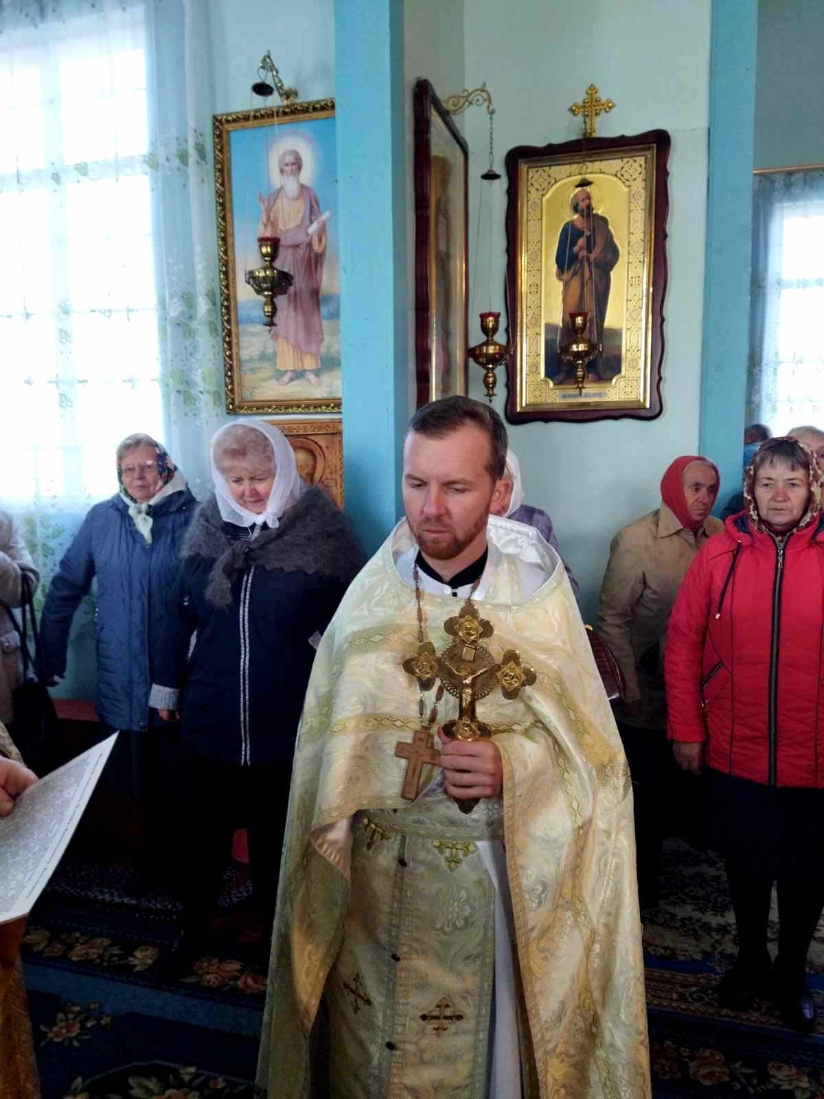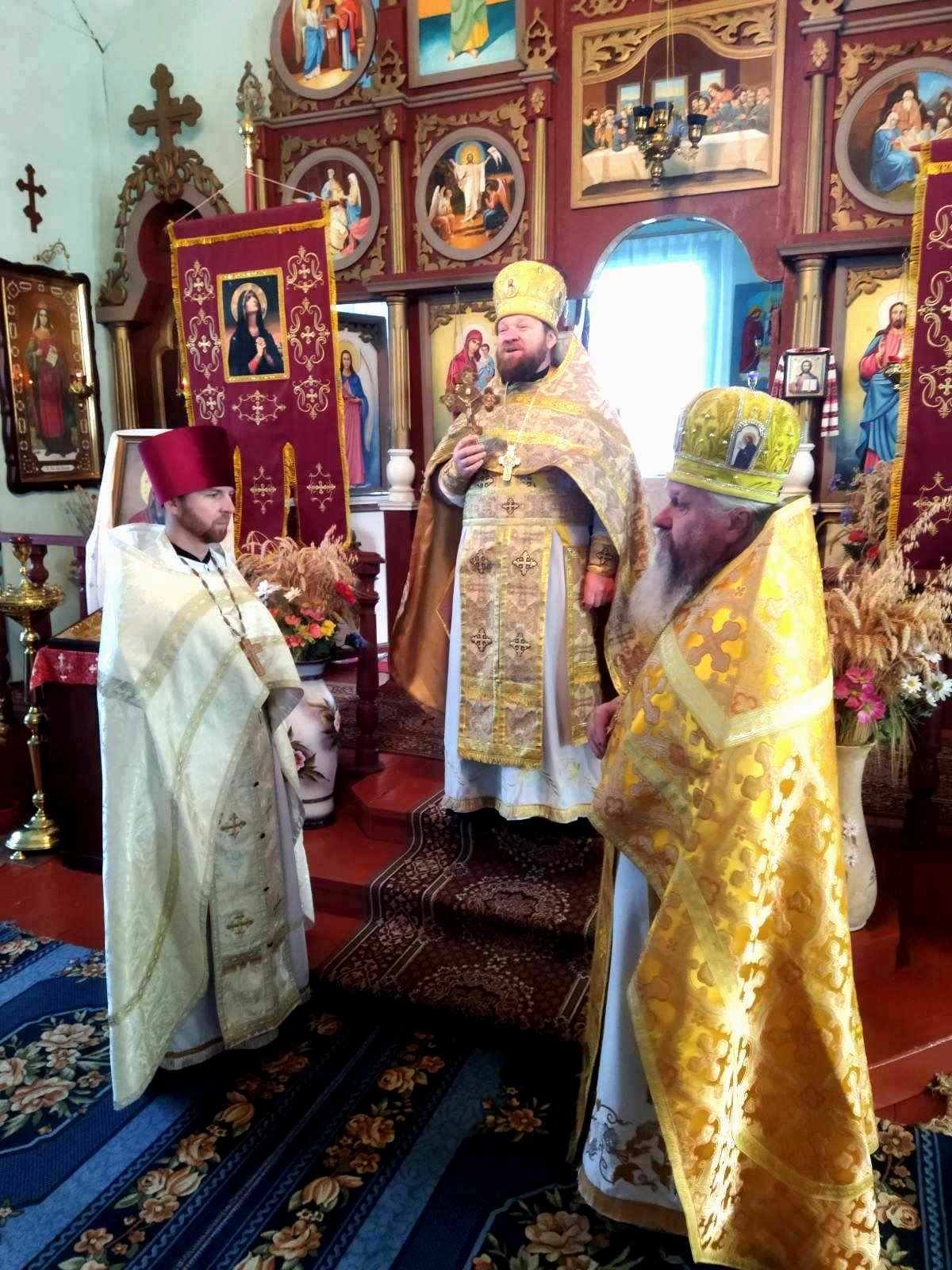 Святкового дня після водосвятного молебню Божественну Літургію очолив благочинний Черняхівського округу архімандрит Мануїл (Бицик), раніше – багаторічний настоятель храму Святого Апостола і Євангеліста Іоанна Богослова с. Обухівка. Йому співслужили ієрей Михаїл Худяков, котрий нині духовно окормляє парафію, та протоієрей Андрій Корнющенко і протоієрей Сергій Головащенко.