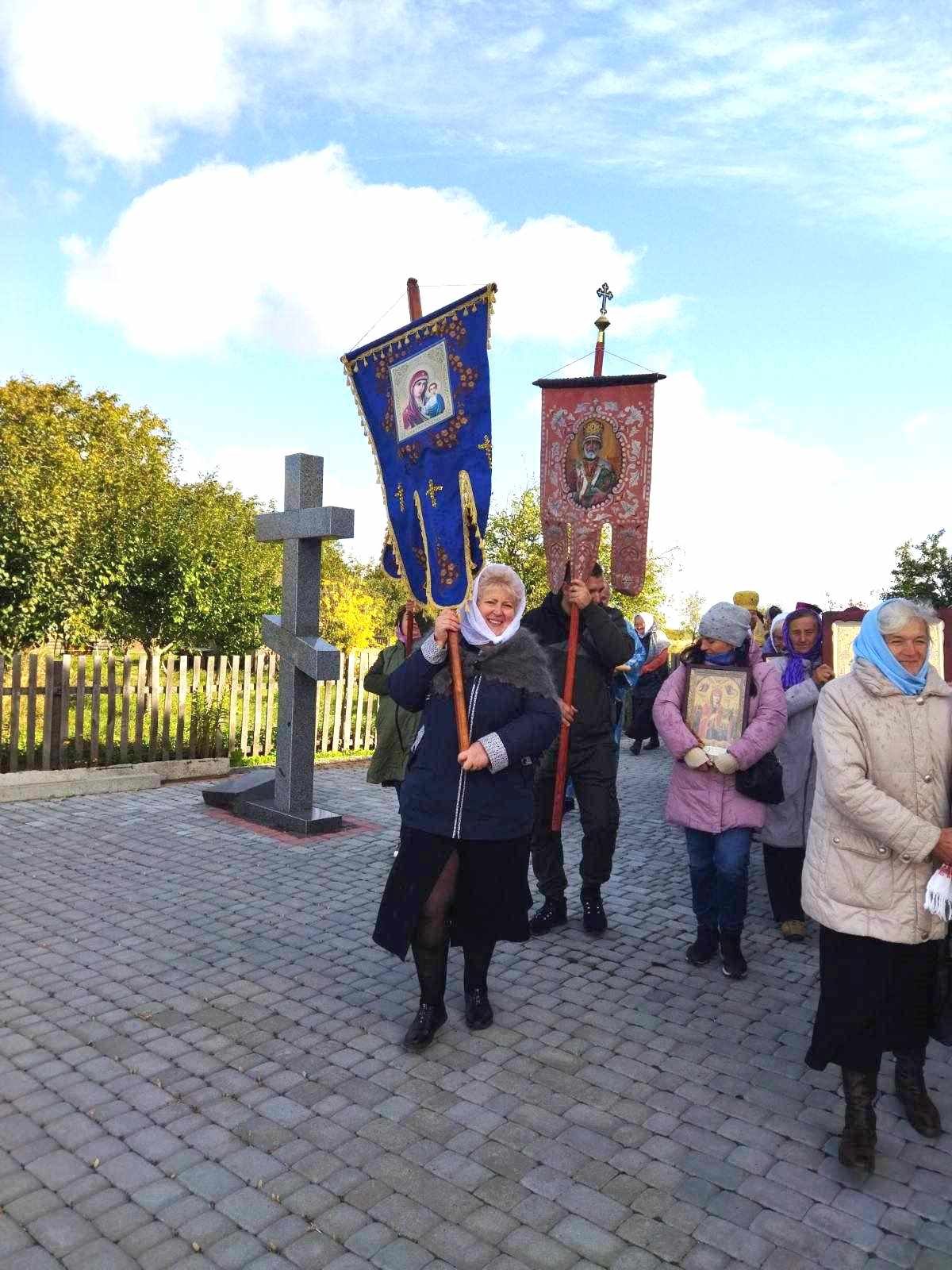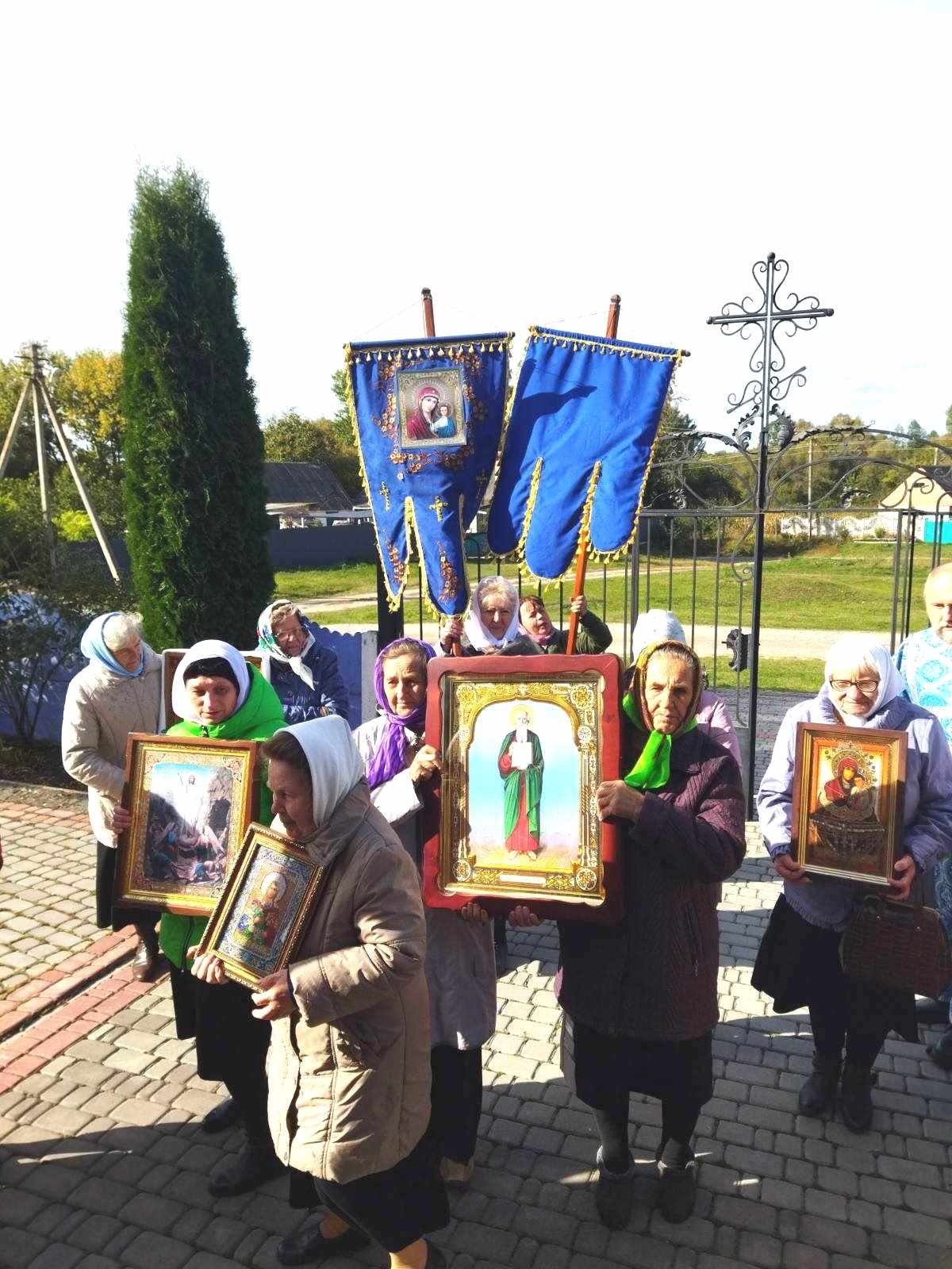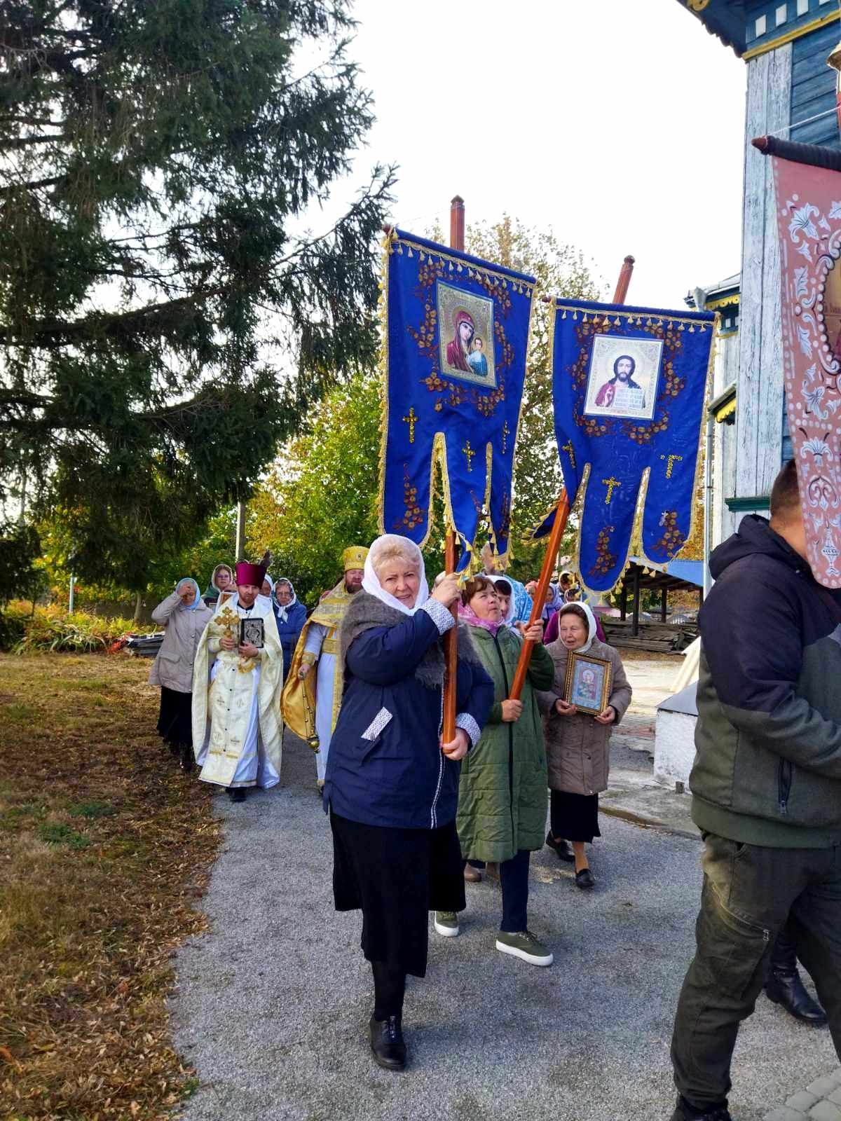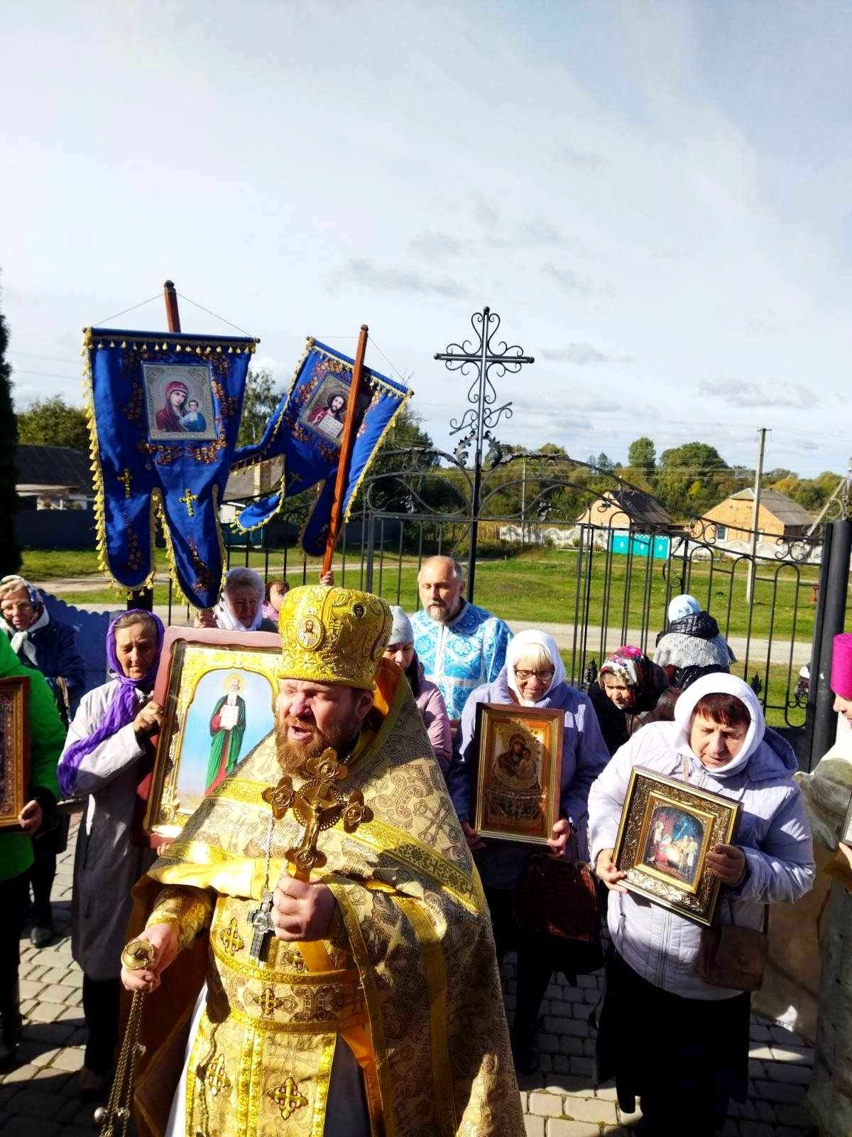Після Божественної Літургії духовенство, парафіяни та паломники обійшли навколо храму Хресним ходом. Сяяли на сонці ікони, тріпотіли над землею хоругви, під небесним куполом лунав молитовний спів… Хресний хід – вияв сили православної віри і ревного моління до Господа, Матері Божої та святих про дарування Церкві і народу Божому благодатної допомоги.
