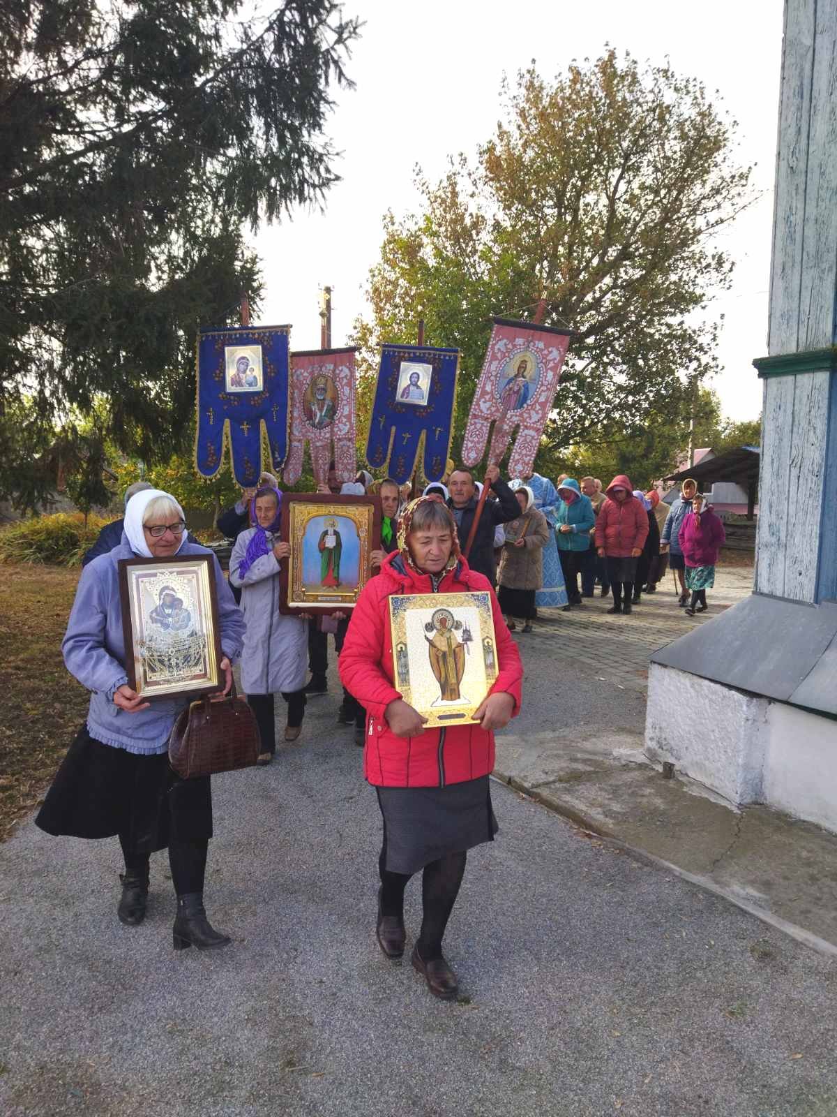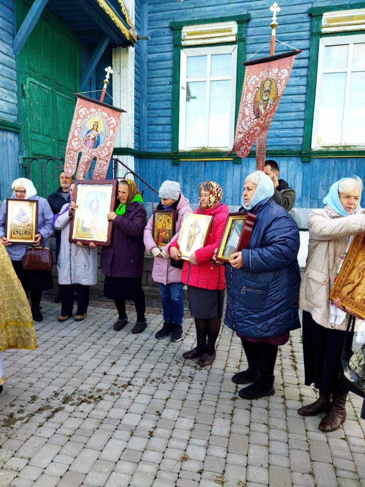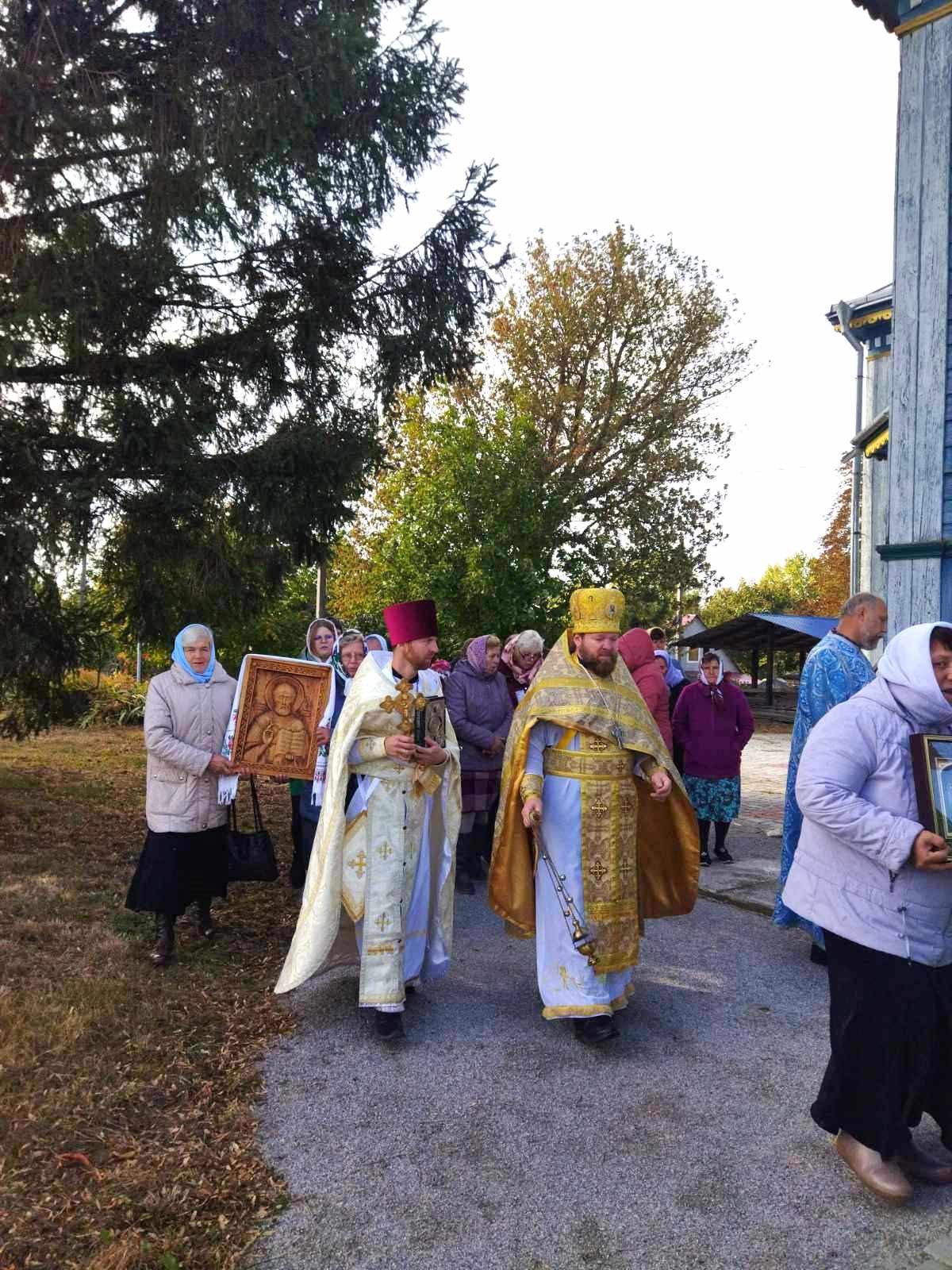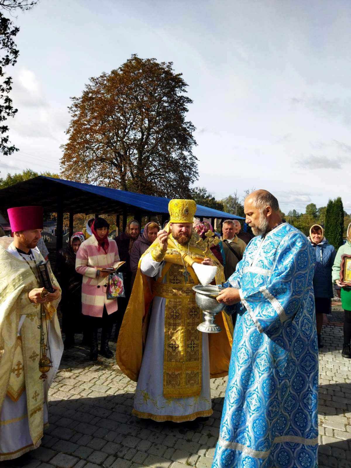 Після Божественної Літургії духовенство, парафіяни та паломники обійшли навколо храму Хресним ходом. Сяяли на сонці ікони, тріпотіли над землею хоругви, під небесним куполом лунав молитовний спів… Хресний хід – вияв сили православної віри і ревного моління до Господа, Матері Божої та святих про дарування Церкві і народу Божому благодатної допомоги.