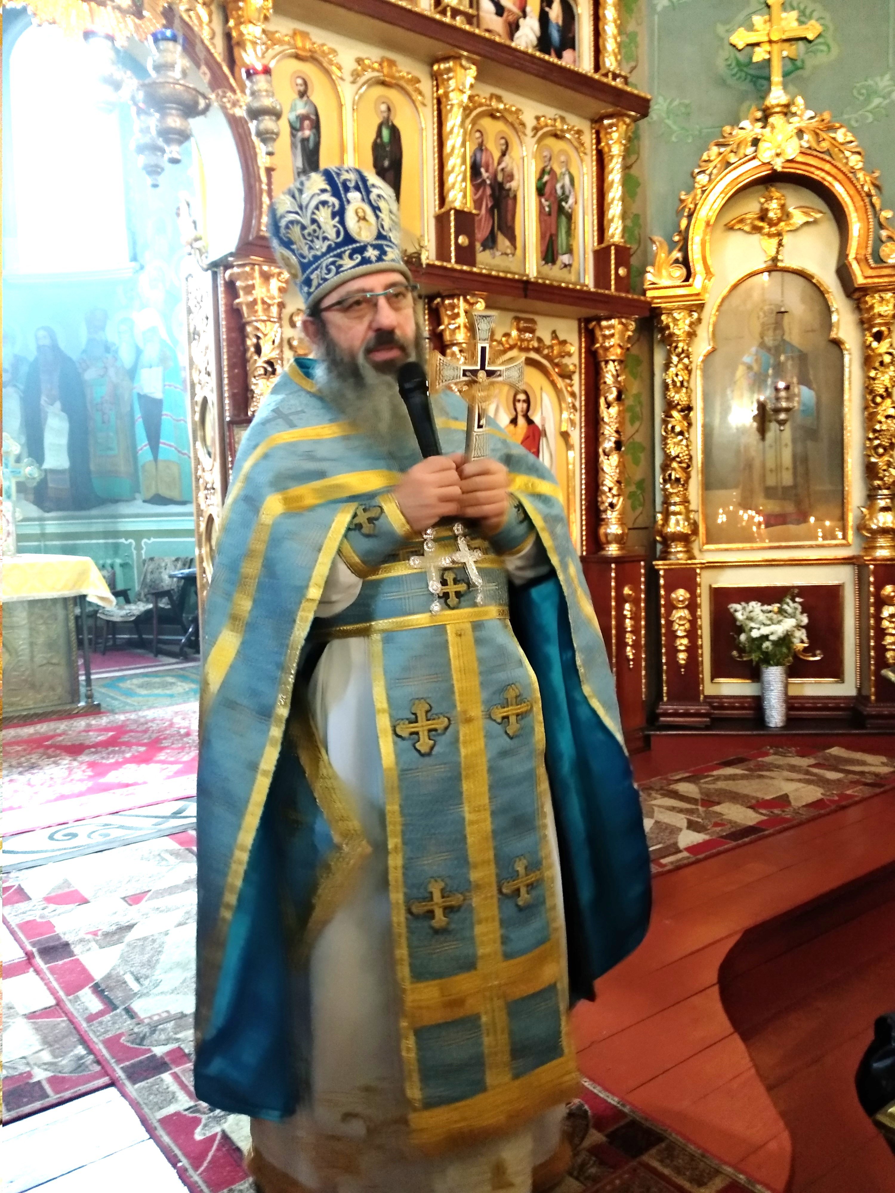 Благочинний Бердичівського округу, настоятель Свято-Миколаївського собору архімандрит Варфоломій (Бойков) привітав усіх з одним із найбільш шанованих в Україні свят, розповідаючи про події, що сталися кілька століть тому у Константинополі, у Влахернському храмі: «Цього дня Пресвята Богородиця прийшла в небесній славі, і люди побачили Її і зраділи. Божа Матір захистила їх від ворогів, котрі оточили місто, накрила Своїм омофором. Цариця Небесна – духовна Матір усіх людей на землі, Заступниця всього роду християнського. Споконвіку Пресвята Богородиця була Покровителькою та Захисницею воїнів-оборонців. І сьогодні ми просимо захистити нашу землю, уберегти славних синів та дочок України, які стоять на сторожі мирного спокою. Знаємо, молитви Божої Матері досягнуть Престолу Господнього і будуть почуті. Будемо ж старанно й щиро молитися до Пресвятої Богородиці та зберігати в серці слова: “Радуйся, Радосте наша, покрый нас от всякаго зла честным Твоим омофором”».